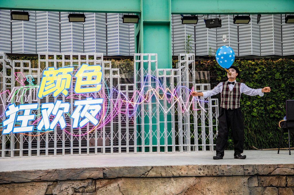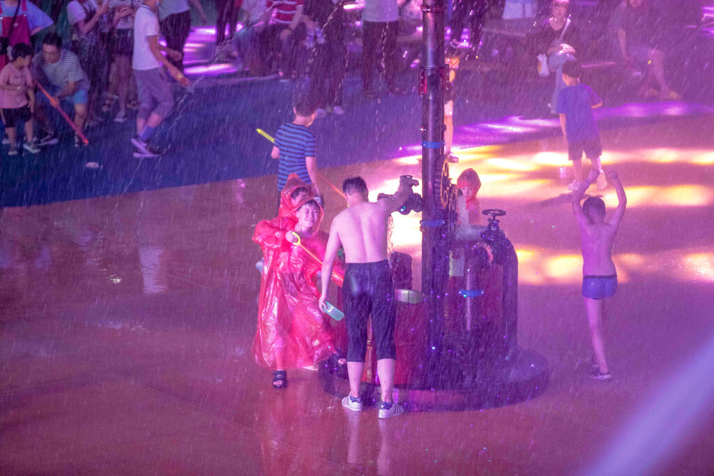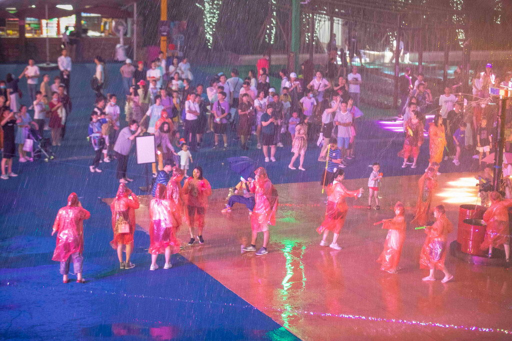 《颜色泼水派对》是夜游上海宋城最清凉的节目,激情四射的开场舞结束后,就到了大家最期待的泼水环节,现在的喷水设备马力全开,瞬间将刚才热舞的场地变成了一片清凉的水世界。