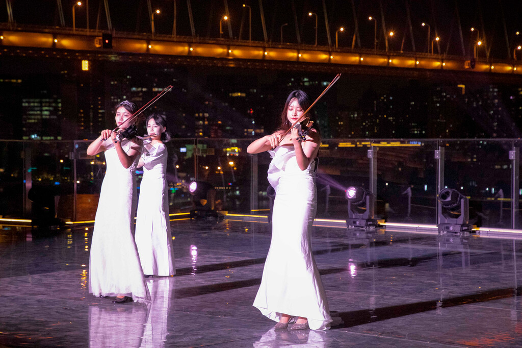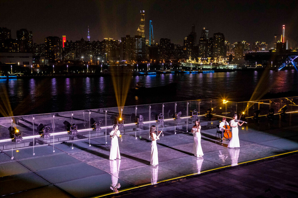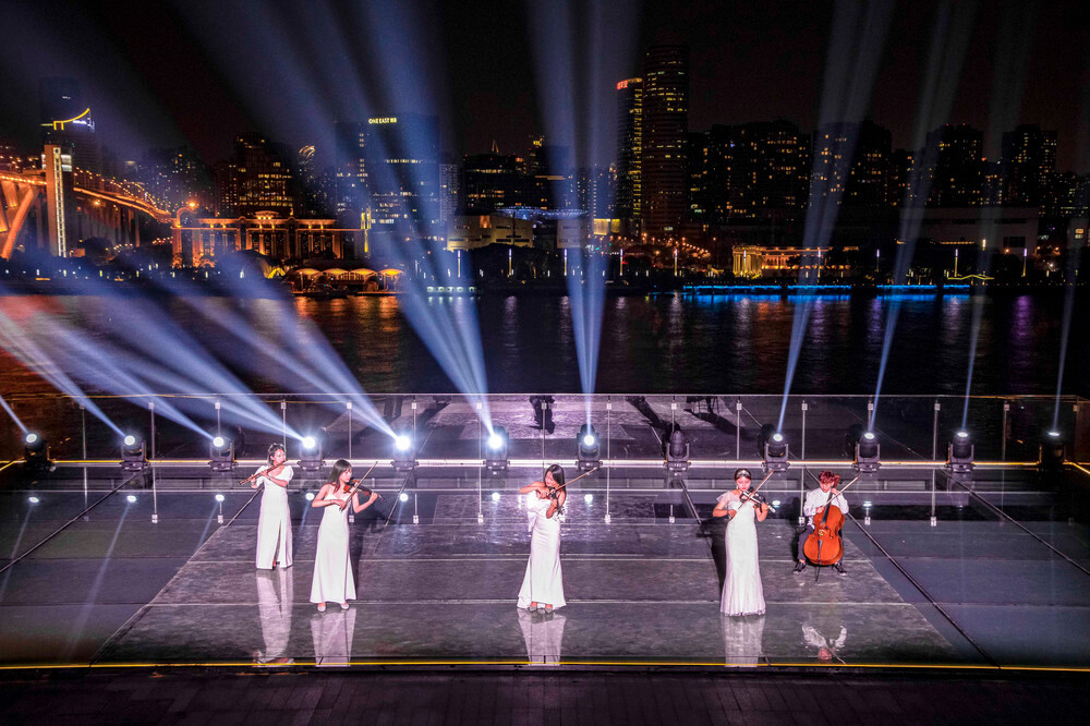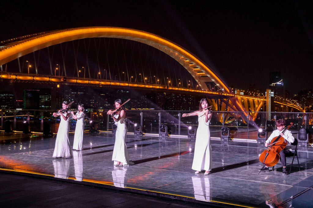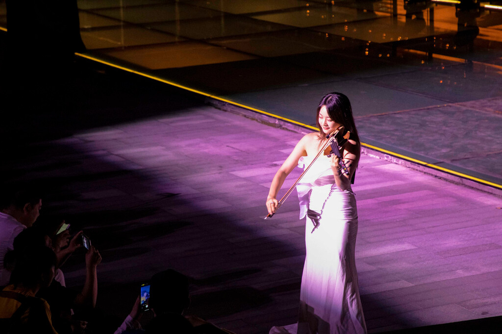 在上海宋城的顶楼聆听一场悬崖音乐会,当小提琴发出美妙的音符,仿佛这些音符在冥冥之中翩然起舞,汇成动人的旋律把我包围,聆听者美妙的音乐再望着眼前的城市夜景,上海宋城所营造的氛围让人沉醉。