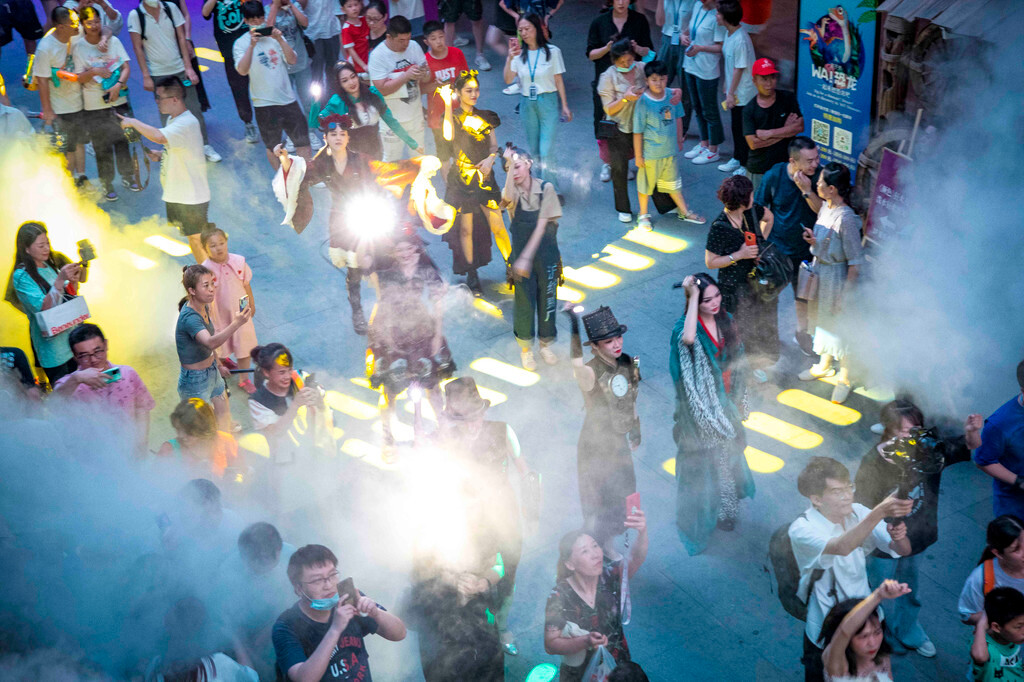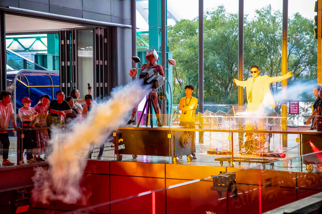 上海宋城的快闪和其他城市的风格各异,上海赛伯朋克风格的快闪,感觉自己瞬间穿越到了蒸汽机械时代,可以和自己喜欢的人物合影,也可以和演员们一起舞蹈,现场热闹的氛围只要你来亲身感受一下就知道是多么美妙的感觉了~