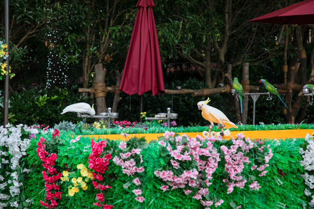 移步一楼室外的鸟秀剧院,这里与精彩的《森林神鸟》,一群可爱的鹦鹉在饲养员的指令下可以做出各种引人发笑的小节目,据说这些鹦鹉的智商和四五岁小孩一般。