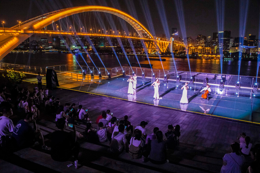 在美丽的黄浦江畔,望着远处的夜上海,聆听着小姐姐拉着悠扬的小提琴旋律,此情此景只有一种美妙的感觉涌上心头,恐怕是第一次享受这么美妙的夜景与音乐
