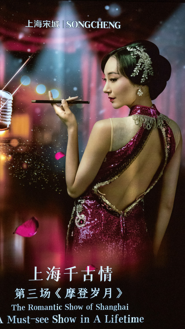进入景区,要穿过一个长廊,两侧是灯光点缀的上海宋城可看可玩的宣传海报,建议你能停下脚步看看,除了必看的演出,还有这些都在哪些楼层看到。