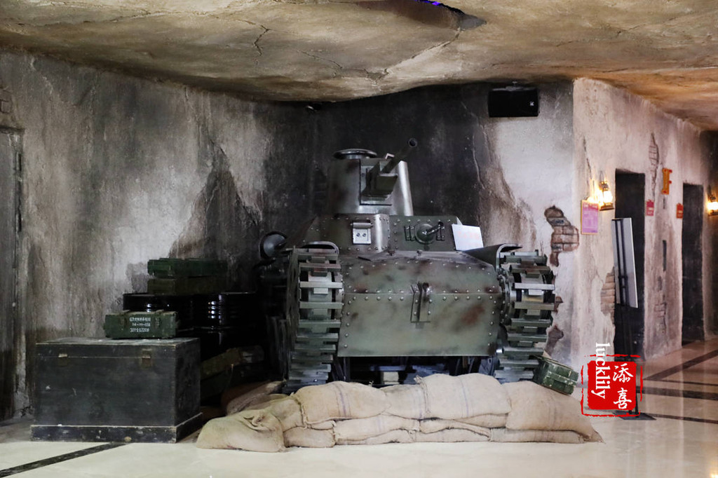 “战火”的战争场景互动式体验区:在这里可以看见上个世纪中叶的战争时期,抗战军人们在实战中的场景。电报房的永不停歇的无线电波、窗外的枪炮声,走过时地面会随时随着枪炮的声音震动,令人身临其境。今日的美好生活,都是曾经的英雄们用鲜血和生命换来的,我们必将珍惜当下!