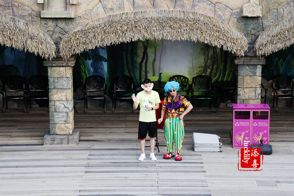 再往上就来到了楼顶上的空中花园,这里有两个超大面积的悬崖剧场,不停时会有小丑表演等各类节目演出。