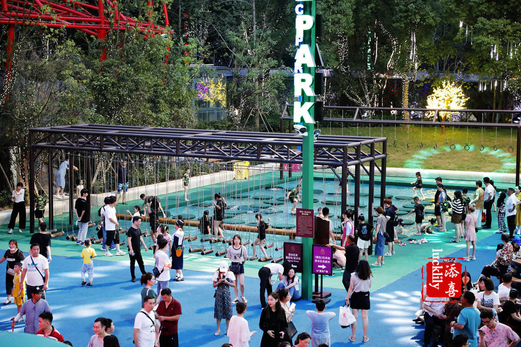 一层户外:彩色森林、森林剧院、音乐广场、戏水池、鸟秀剧院、演艺公园