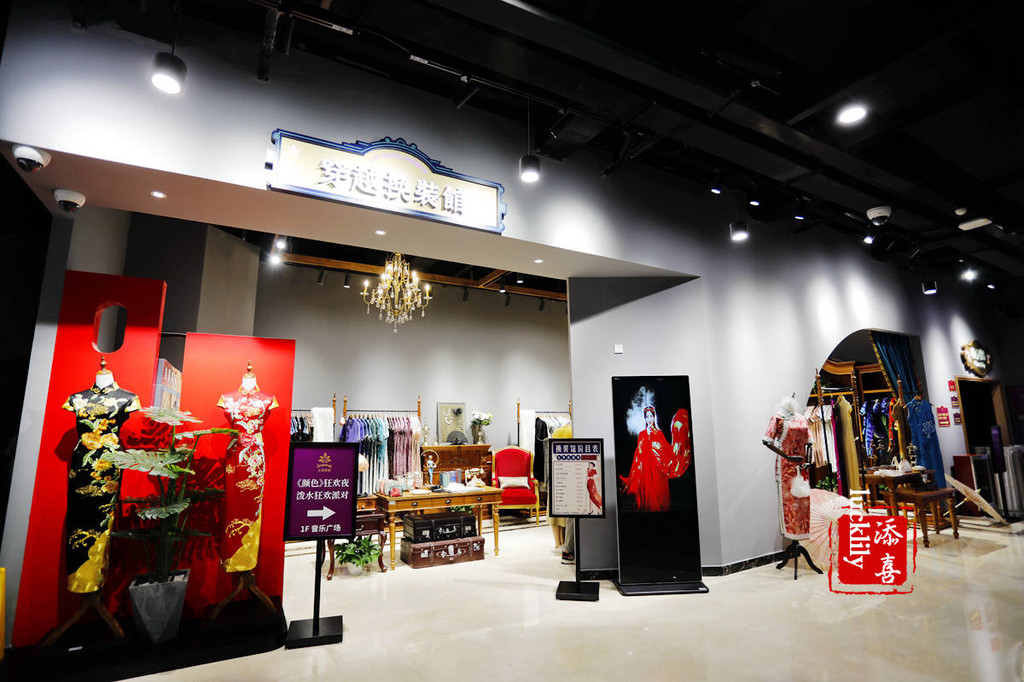 验票后会经过第一个换装区,在四楼千古情街区还有一个,换装区内基本上都是民国风的服饰,与上海宋城的民国主调很搭,喜欢自拍的就可以换上一身去穿越啦!