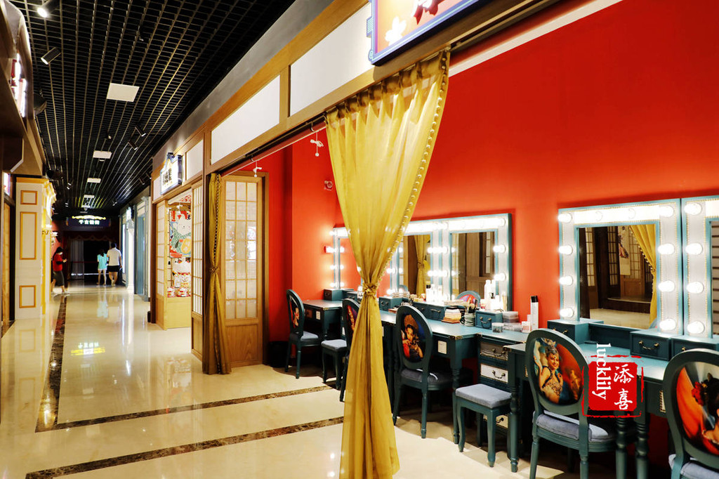 四楼有一个更大的换装区域,并且有一整排的布景摄影室,非常适合在这里拍民国风的摄影写真。