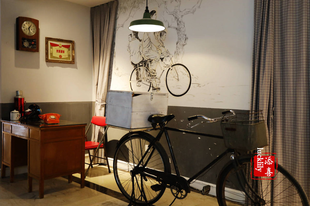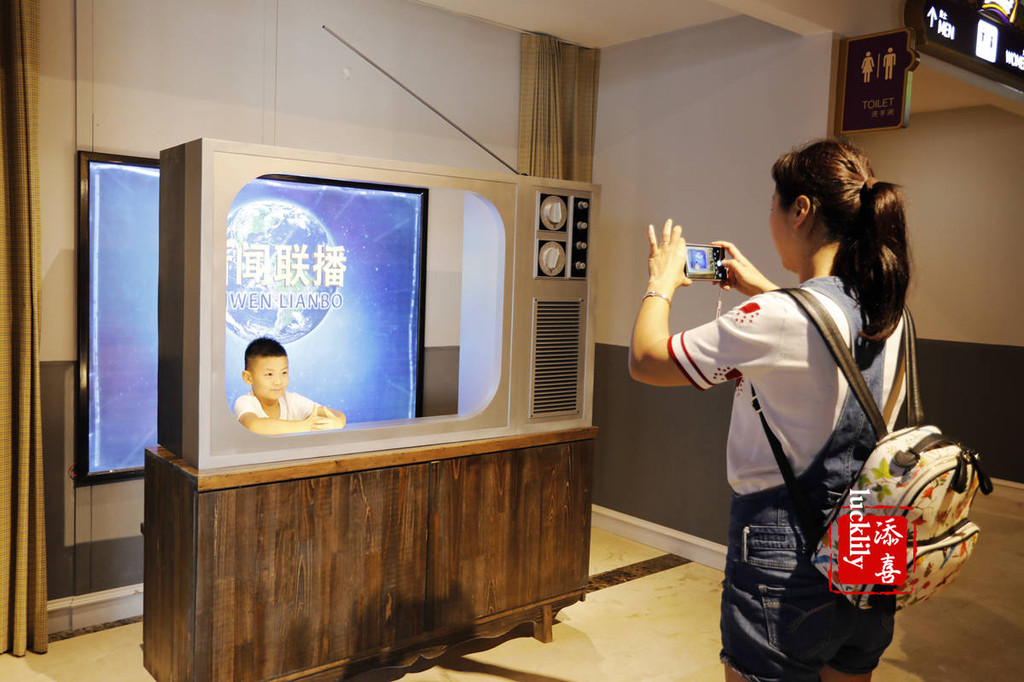 四楼的千古情街,打造的就是老上海的回忆体,28寸的脚踏车、热水壶、电话机、家里的老式橱柜、盆盂……10几台14寸黑白电视机、最早的彩电同时在播出着不同集数的电视剧《渴望》,我竟看得有点入戏,下午的时候还专门又回到这里看了半集。