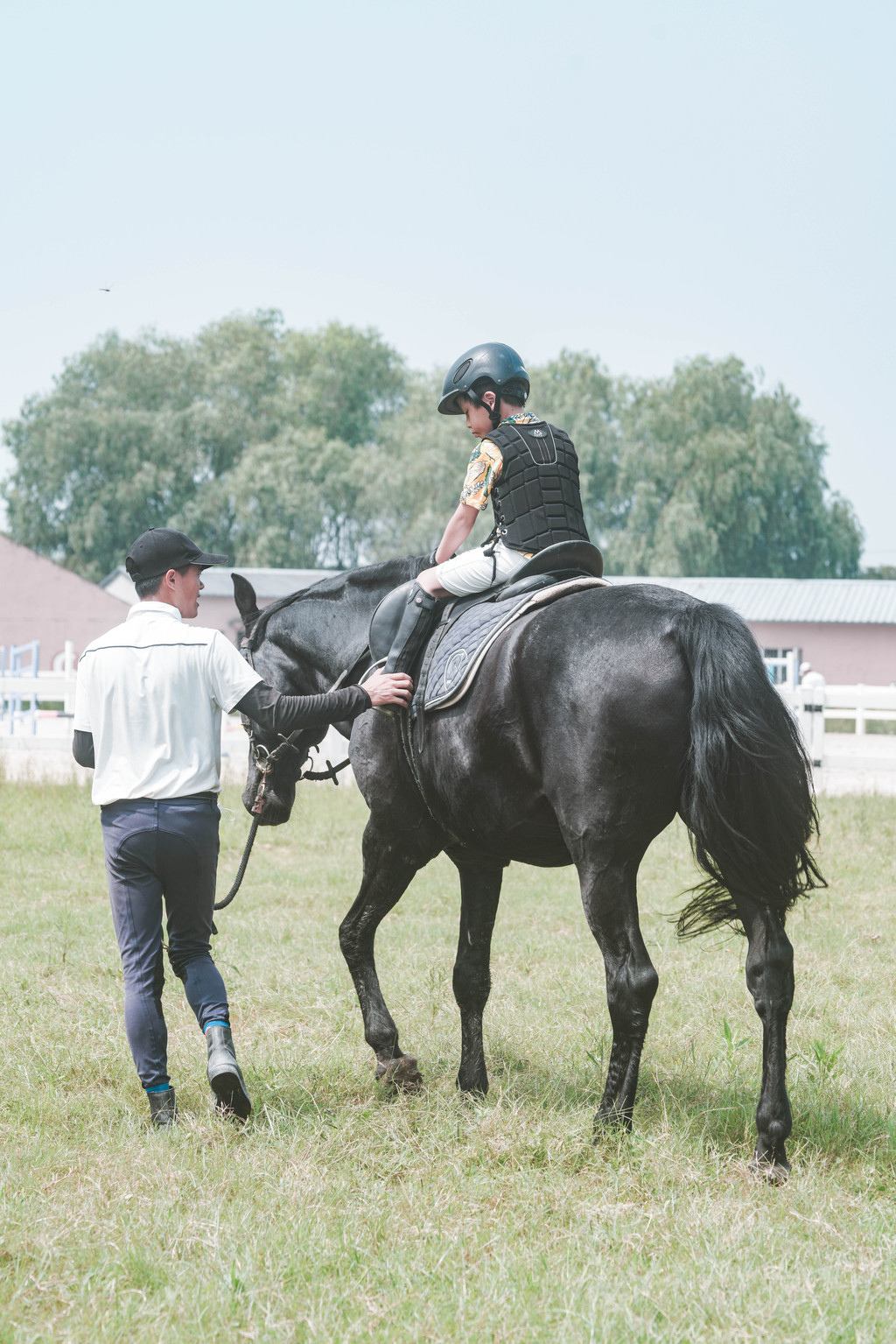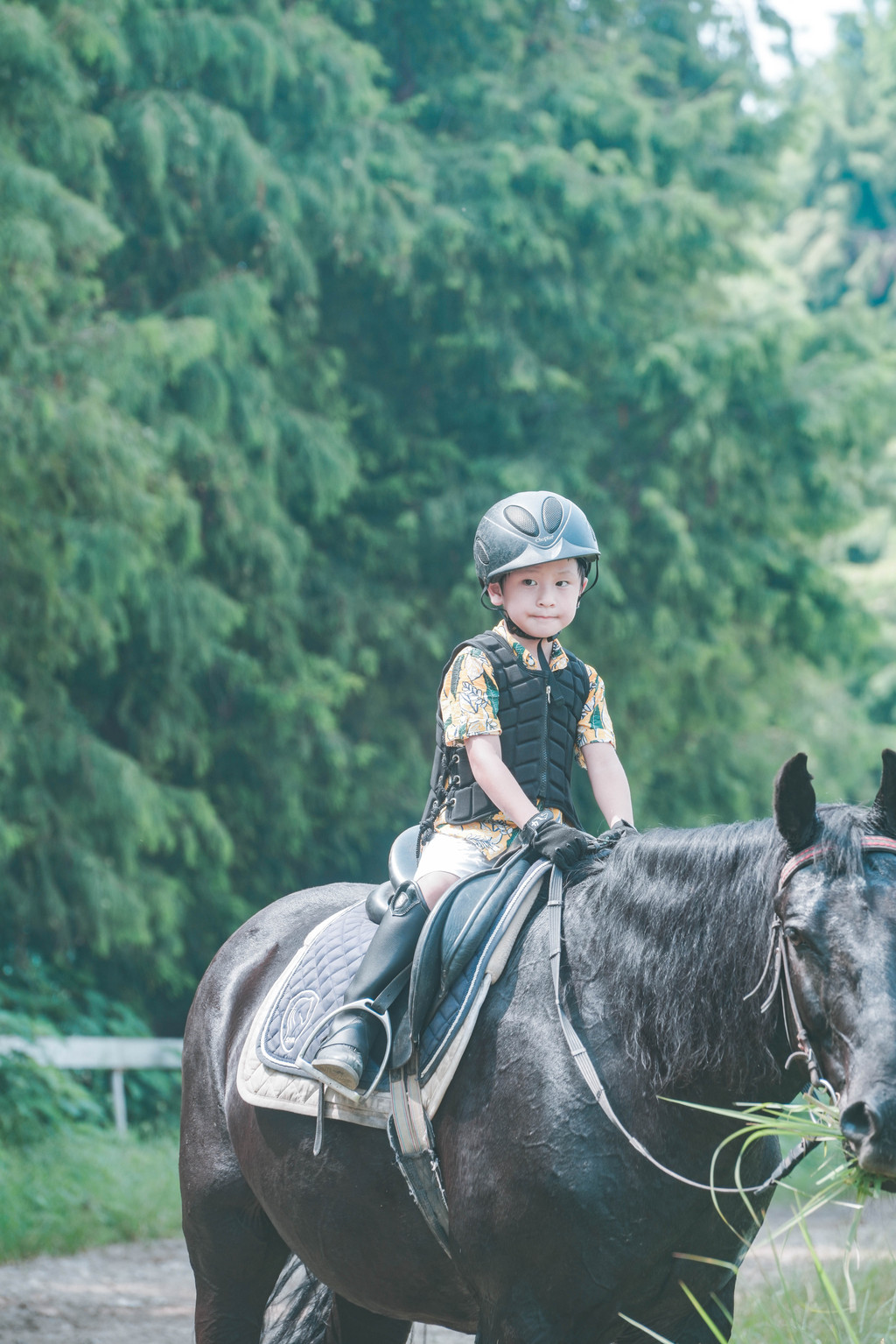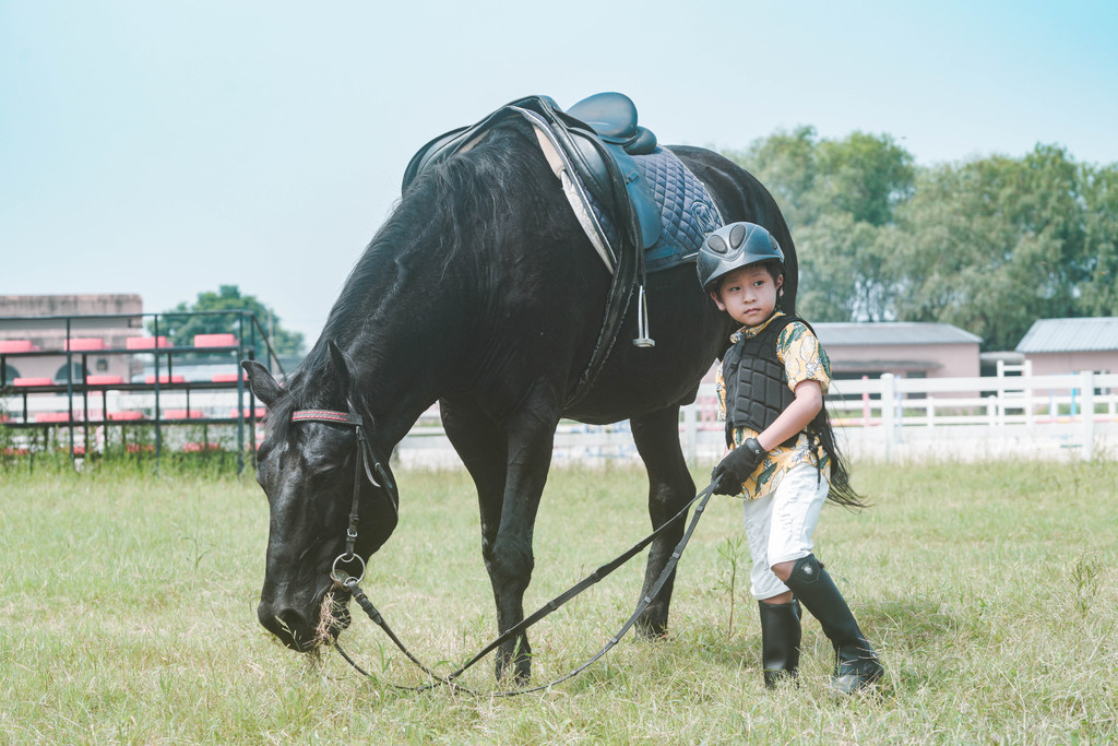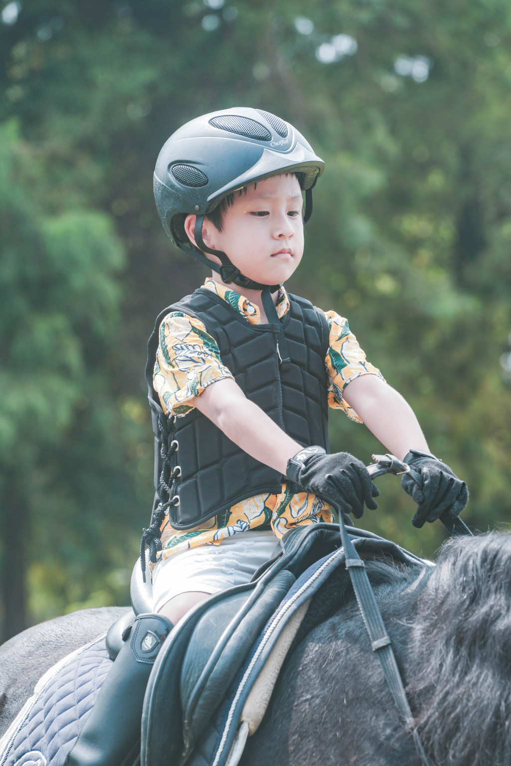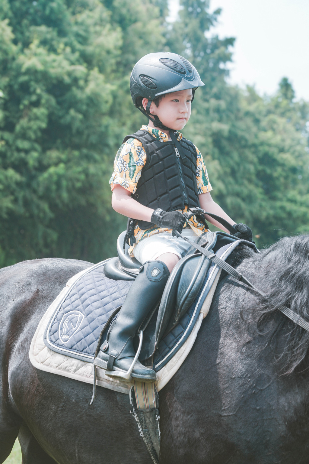 俱乐部里包括小朋友在内的各种装备很齐全,原本还担心会不会没有合适元宝的尺寸,结果是我多虑了,从马甲到马靴、手套、头盔,就像量身定做一般很合身,不得不说,换上全套马术装备之后,元宝瞬间化身小小骑士,太飒,一下子就有了英伦骑士范。