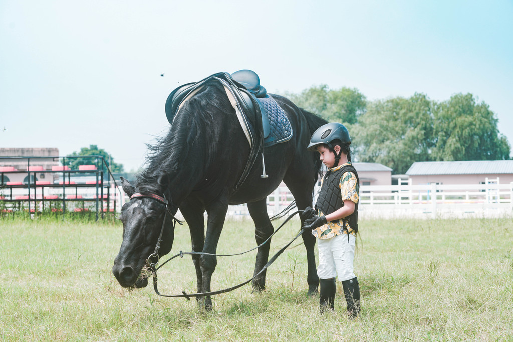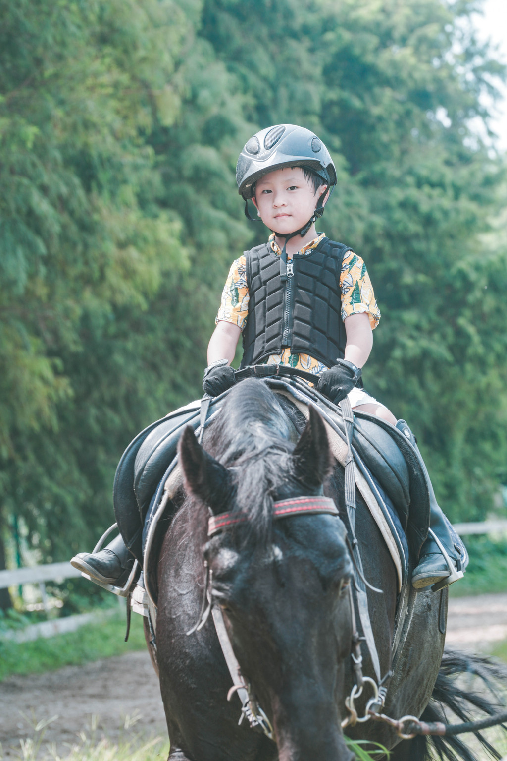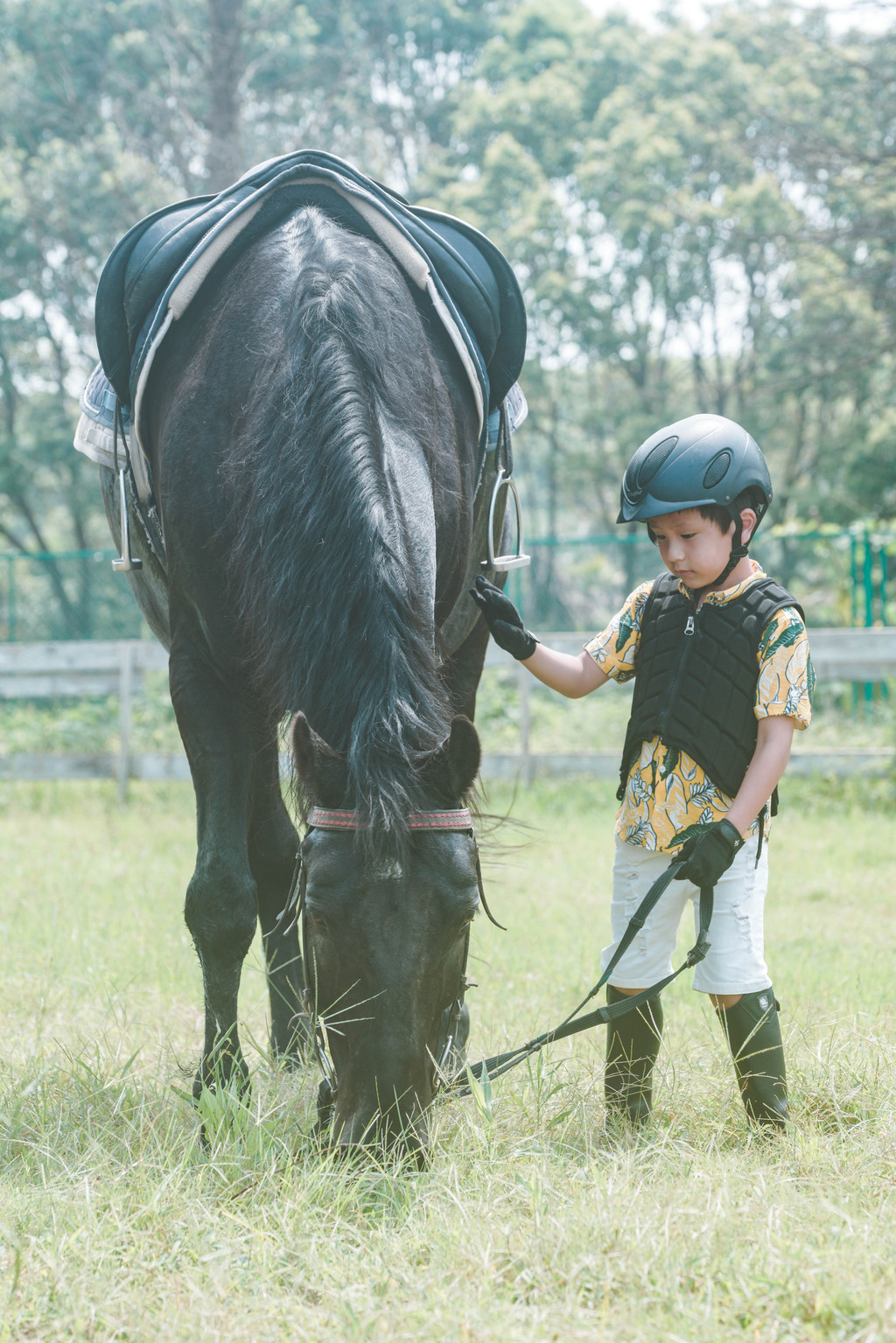 一对一的教练保证了马术体验课的质量,教练帅气细心,因为元宝是初学者,所以先教了元宝如何正确接触马、摸马、辨别马的习性,和马儿近距离建立熟悉感。