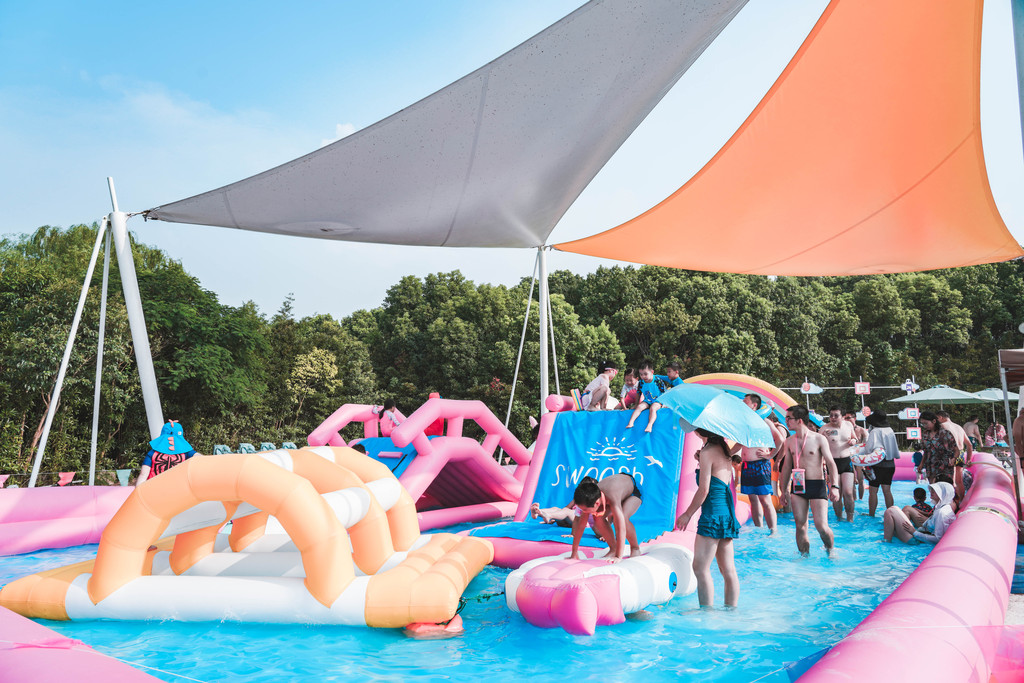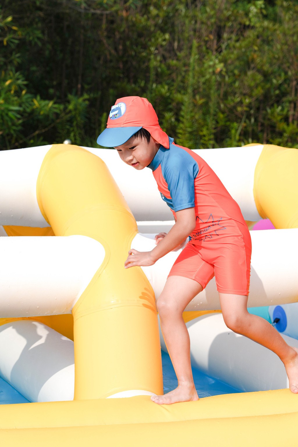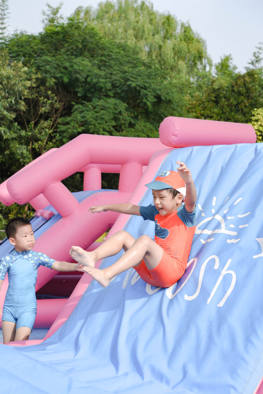 充气堡闯关水上乐园是元宝的最爱,马卡龙的色彩就像童话里的城堡一般,层层闯关,乐趣无穷.