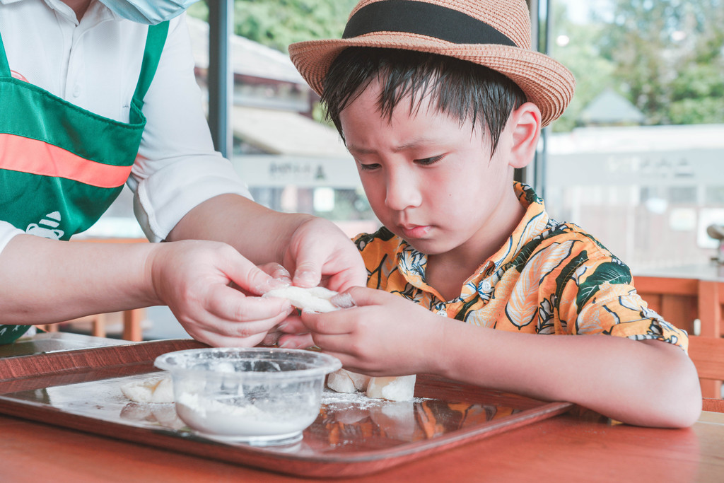 除了可以和萌宠亲密接触之外,小小牧场的四季萌趣DIY手作工坊有不同主题的DIY课堂,我们去的时候是制作传统时令点心,做豆沙馅的年糕点心。