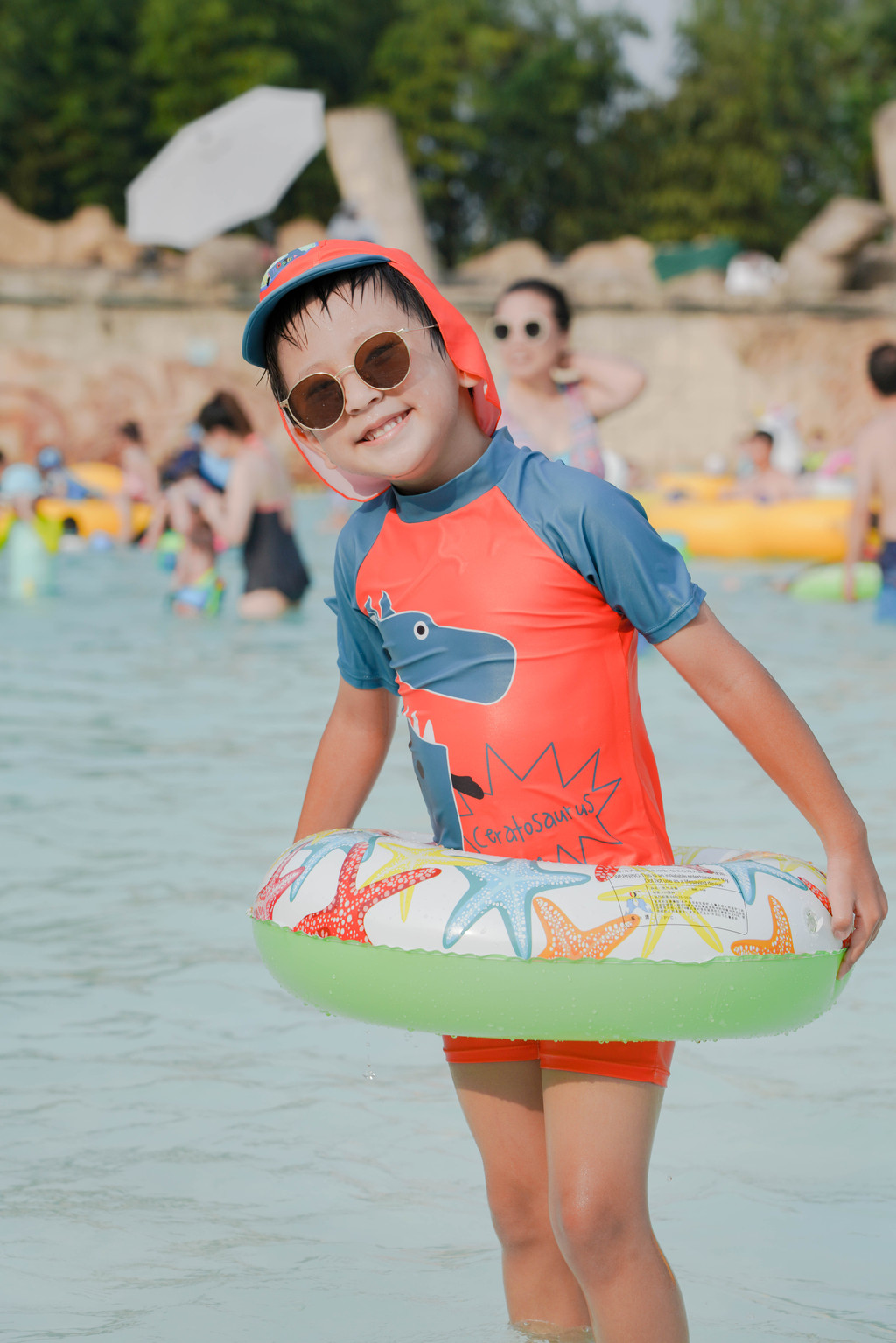 造浪池老少皆宜,可以租一个皮艇体验,漂在水上非常惬意,每逢景区的造浪时间,一阵阵浪花打在身上,就像真的置身海边。