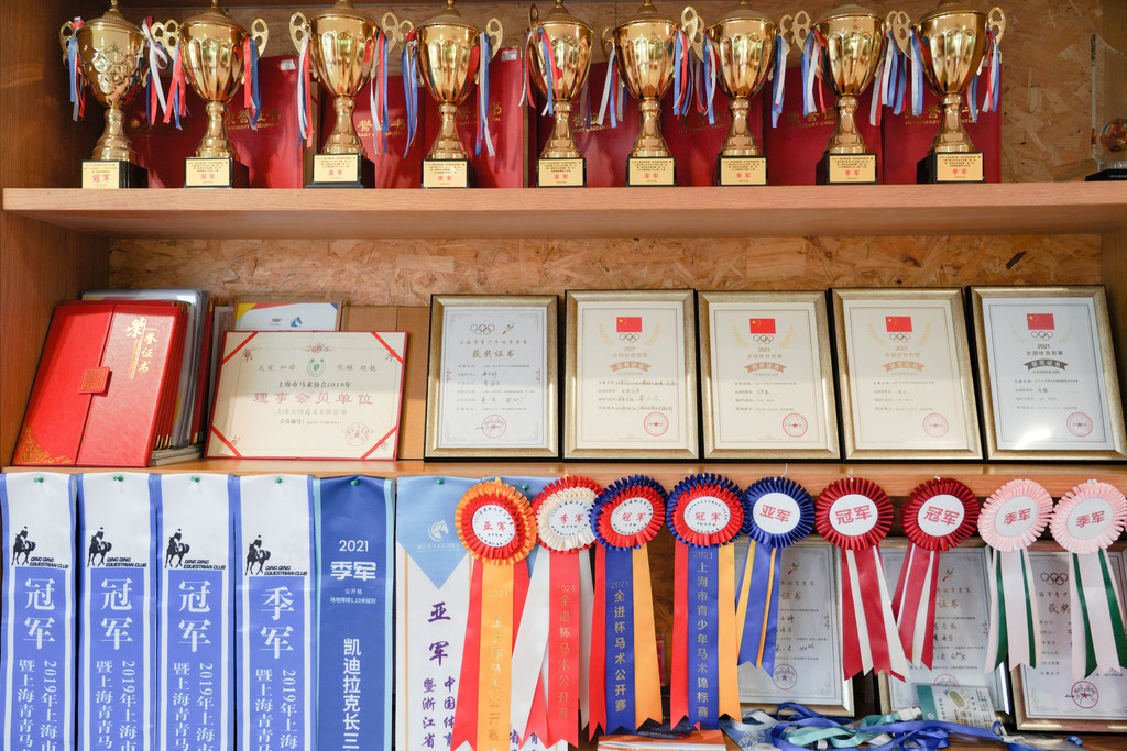 走进俱乐部,办理手续,整排的奖杯和荣誉证书尤为醒目,不愧是上海妥妥的老牌马术俱乐部,就是专业!每个妈妈都难免望子成龙,看到奖杯的那一刻,我脑海里迅速遥想了以后元宝在此学习马术,然后有一天也捧回了这样的奖杯!