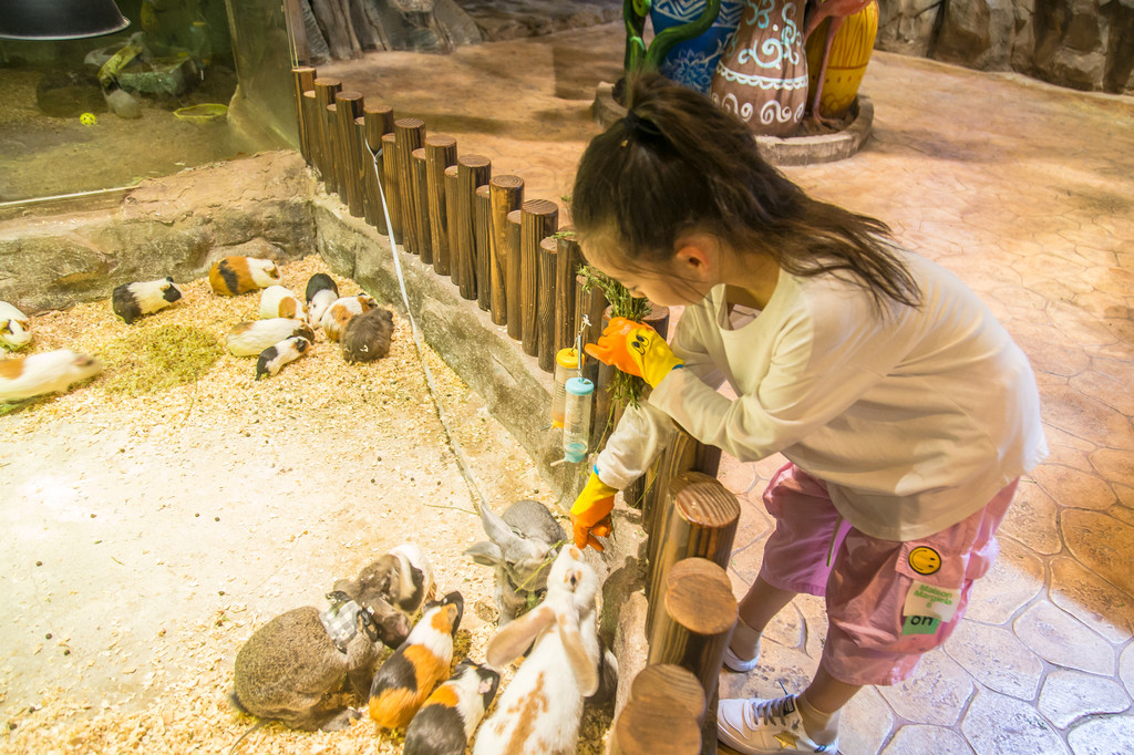 在一楼的另一边,有个萌宠乐园,我把它放在了最后一站,在这里可以亲自喂羊驼、豚鼠、兔子等小动物。喂动物的食物需要自行购买,10元一份,但一定要带好手套才可以哦!小动物们和小朋友们一起玩耍的画面总是那么温馨,谁能拒绝小动物们的卖萌呢!