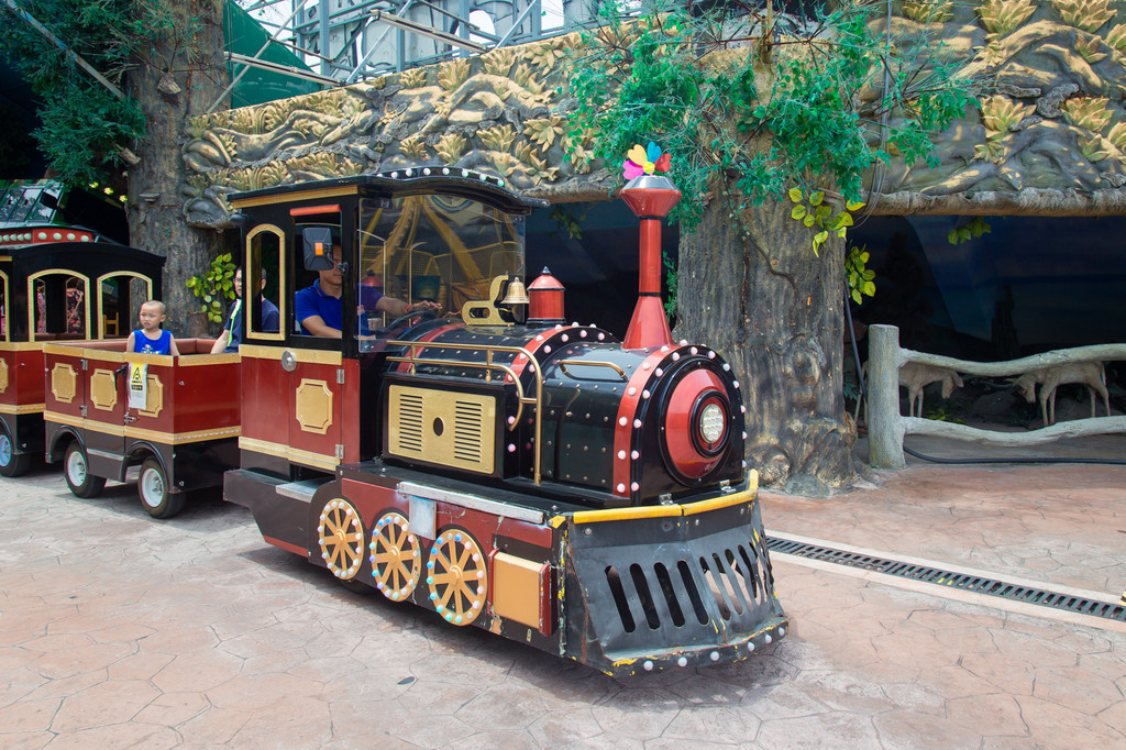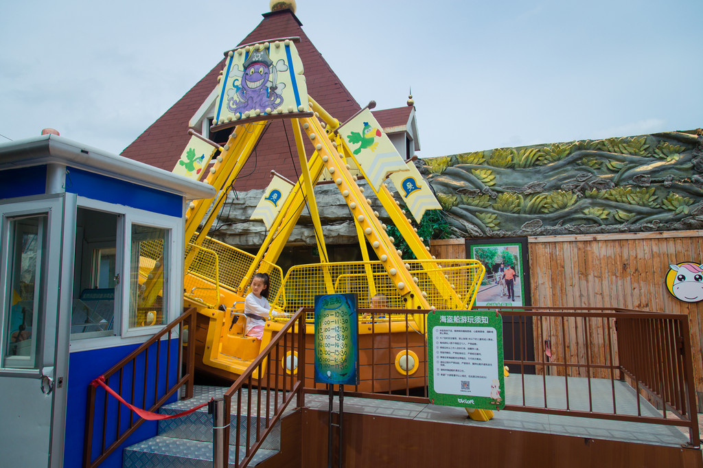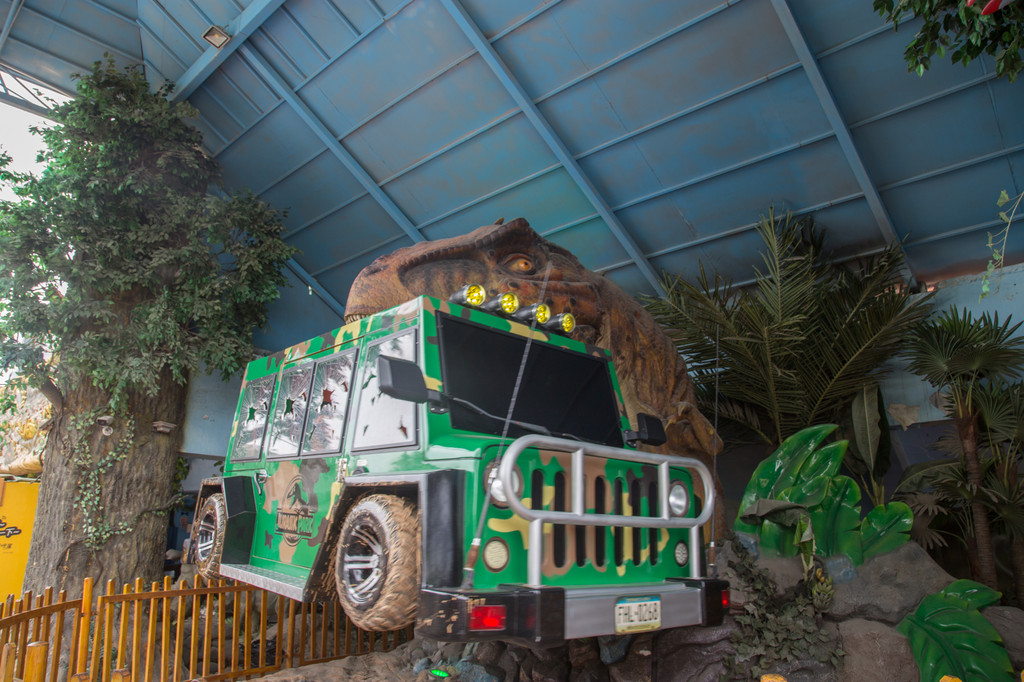 侏罗纪大冒险,仿真的恐龙,长大了嘴巴,用锋利的牙齿咬住了一辆汽车,在空中摇晃,想要一口吞下去的感觉。小小的海盗船,在大海里摇晃着,寻找着各类宝藏。