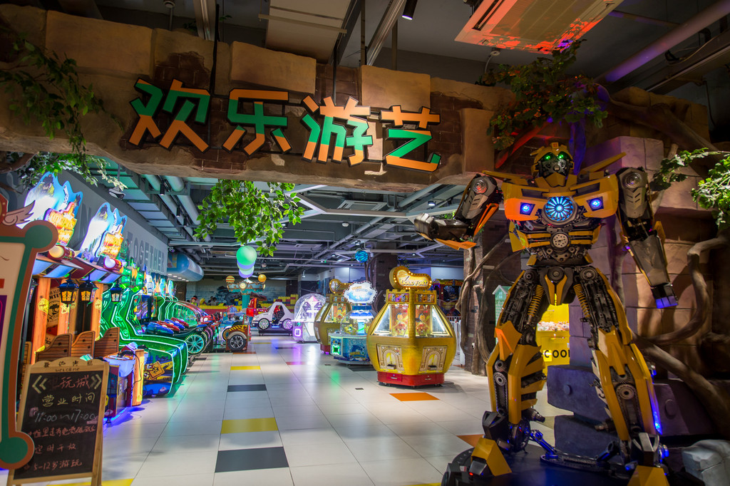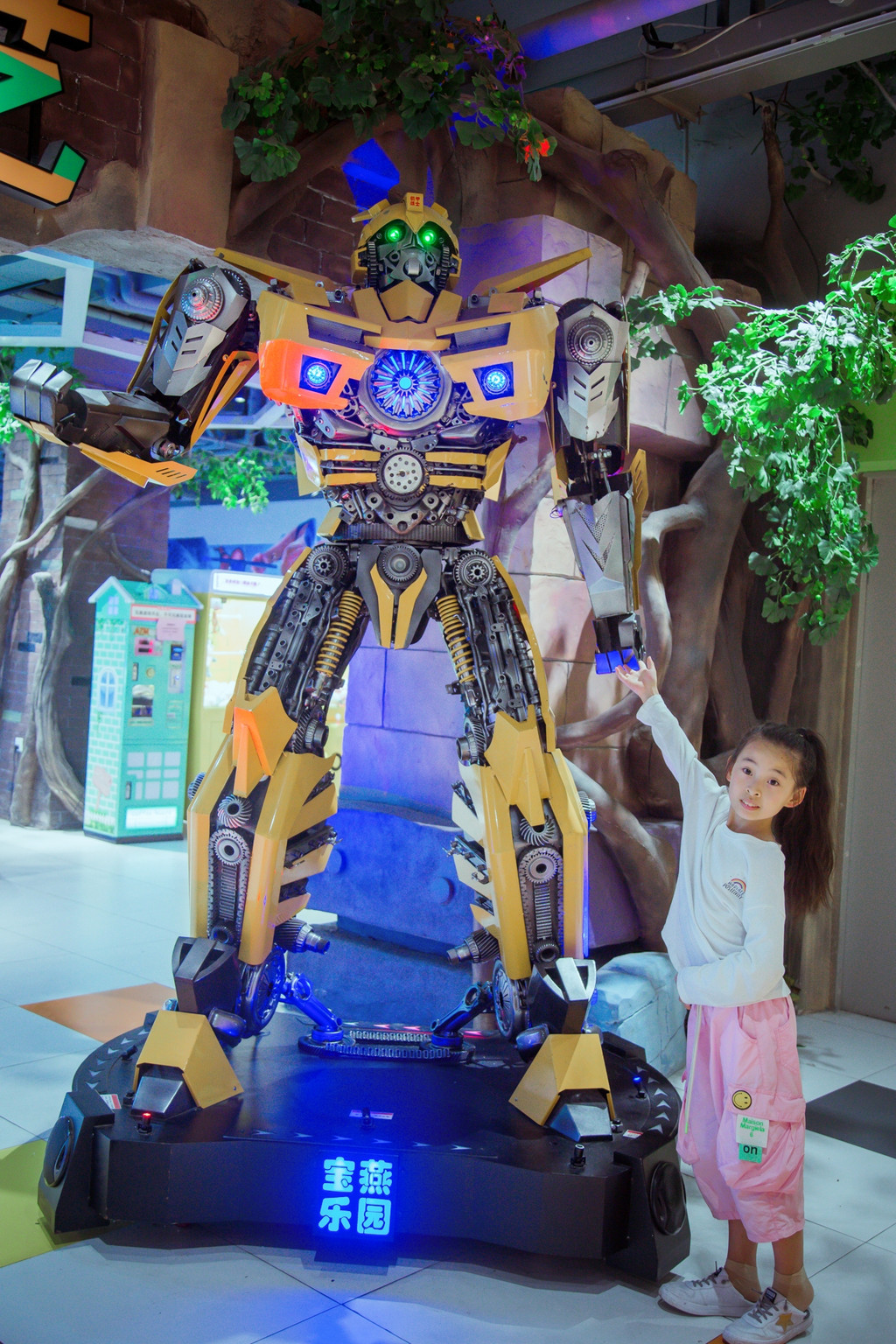 二楼游艺厅门口会说话的变形金刚,是孩子们必合影的。大黄蜂的样子就像心中的英雄一样威武帅气。