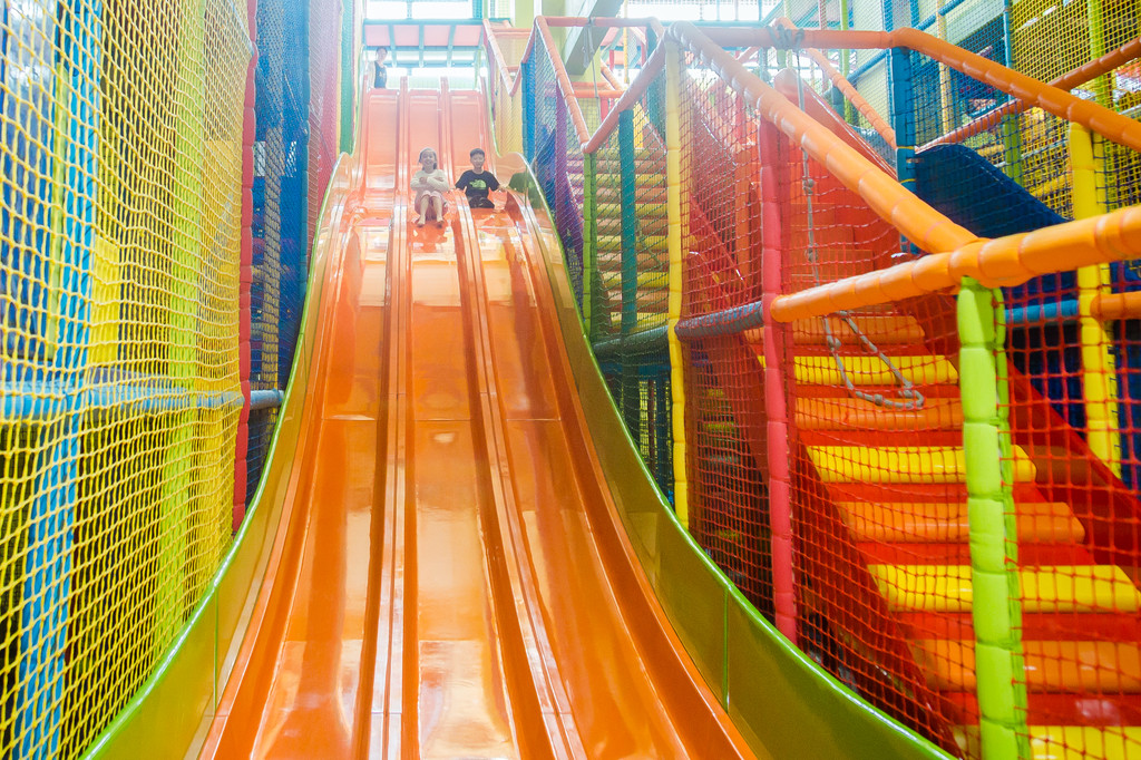 其次,是一楼的滑梯乐园,各式各样的超大滑梯款式,大人都玩的停不下来,更别说小孩了,这简直是亲子的天堂。最为刺激的是90度的垂直滑梯,那真的挺刺激的,反正我是不敢玩,但是紫钰还是去感受了,她成了我心中的勇士。玩滑梯需要穿长衣裤和地板袜,防止下滑速度快摩擦伤皮肤。
