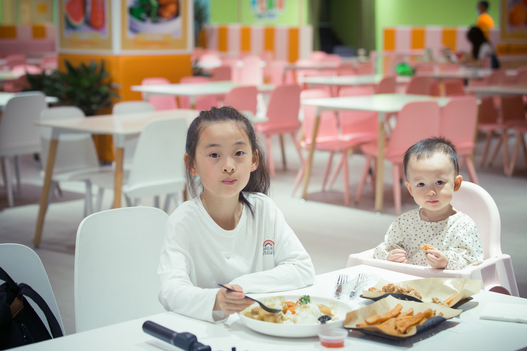午餐也是在二楼的亲子餐厅吃的,粉白色的餐厅看着很清爽,丰富的餐饮服务,事物的口味都是以孩子为主,性价比也是比较高的。