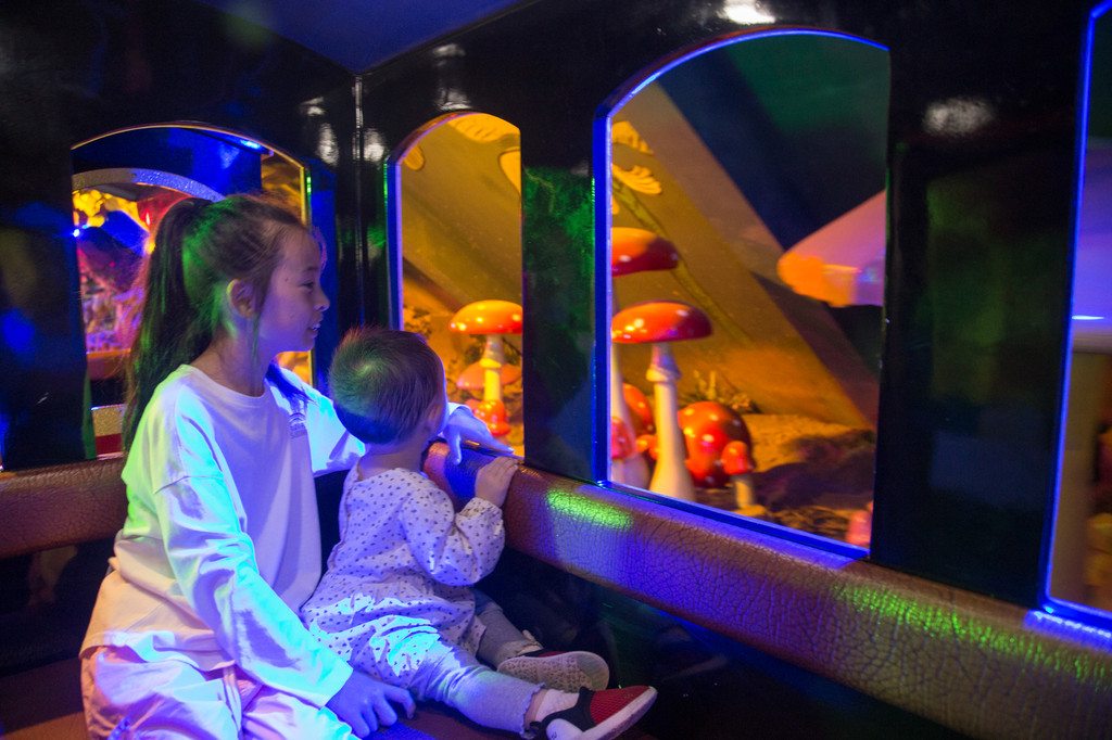 一进乐园,就是VR动感影院,分5D,7D和9D,是根据不同年龄段的小朋友来设置的。带上眼镜,身临其境,可以让孩子们感受不一样的世界。