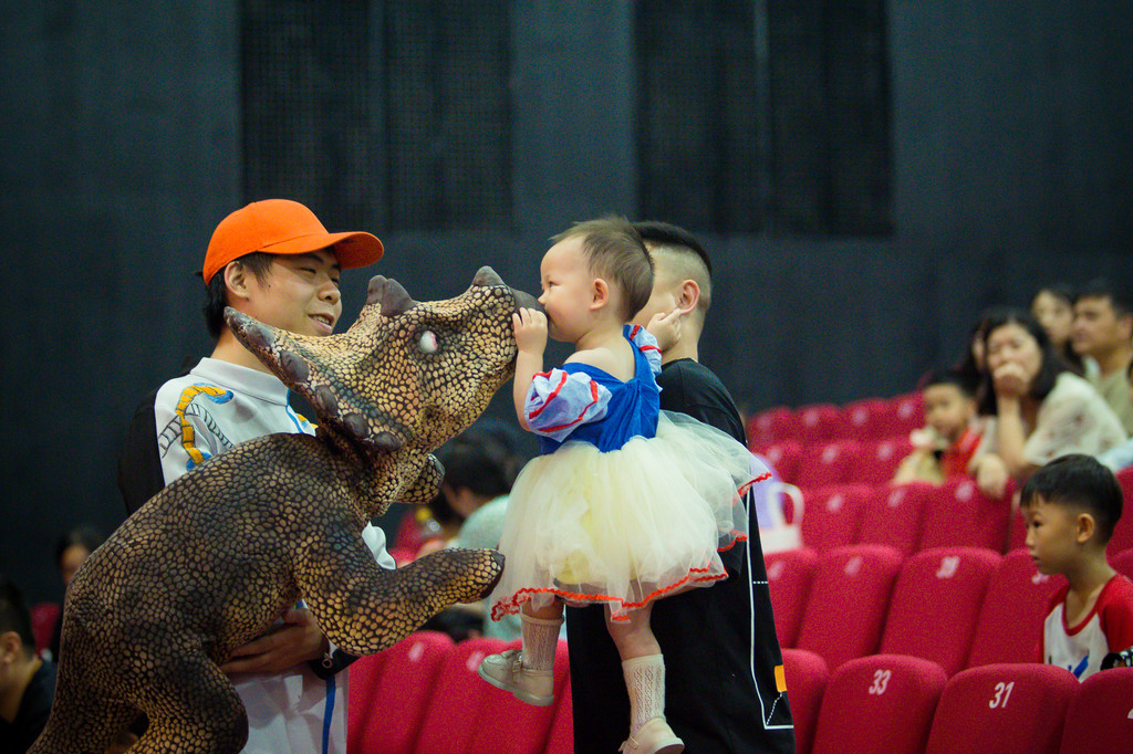 开场前,工作人员会拿着一只小恐龙,和孩子们互动,全场几乎沸腾,能感受到孩子们对恐龙的喜爱,这样前所未有的体验,我想她们一定会铭记于心!