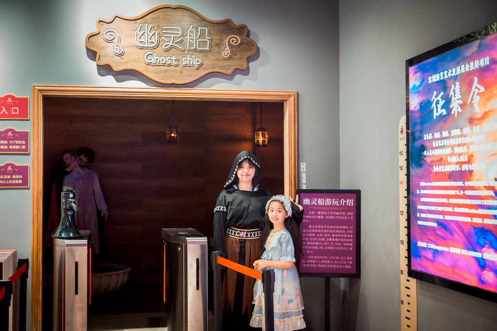 《战火》《幽灵船》《聊斋惊魂》等,这几个神秘又动人心魄,摄人心魂的体验项目,不建议带着孩子体验,紧张的音乐加上演员的互动,还是有些恐怖的。