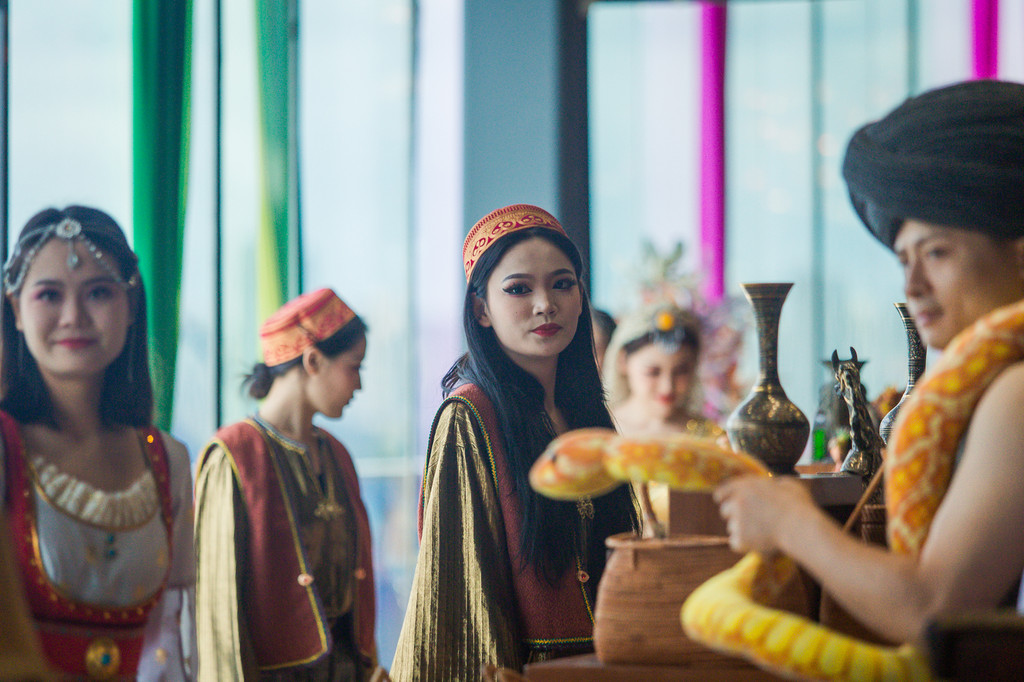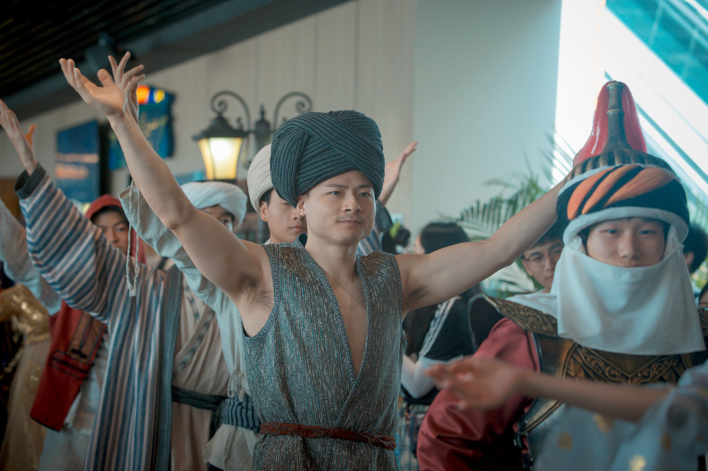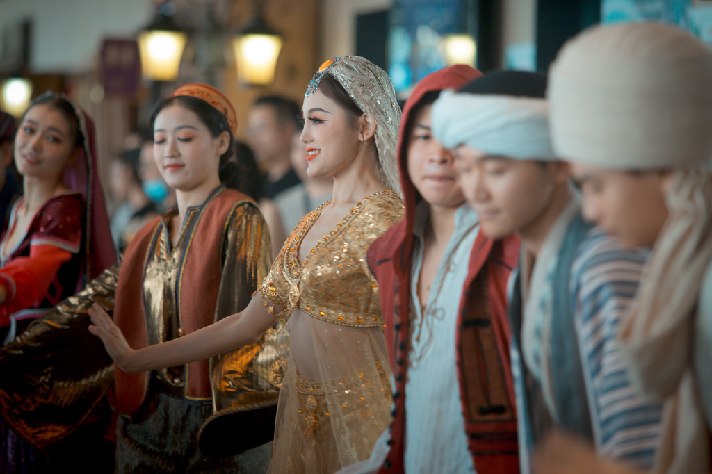 在六楼的天上街市,一定要参与一次《神灯快闪》,转眼间走进阿拉丁神灯的故事,随后还可以跟着演员一起跳舞,这样在人群中的表演,你一定会喜欢的。