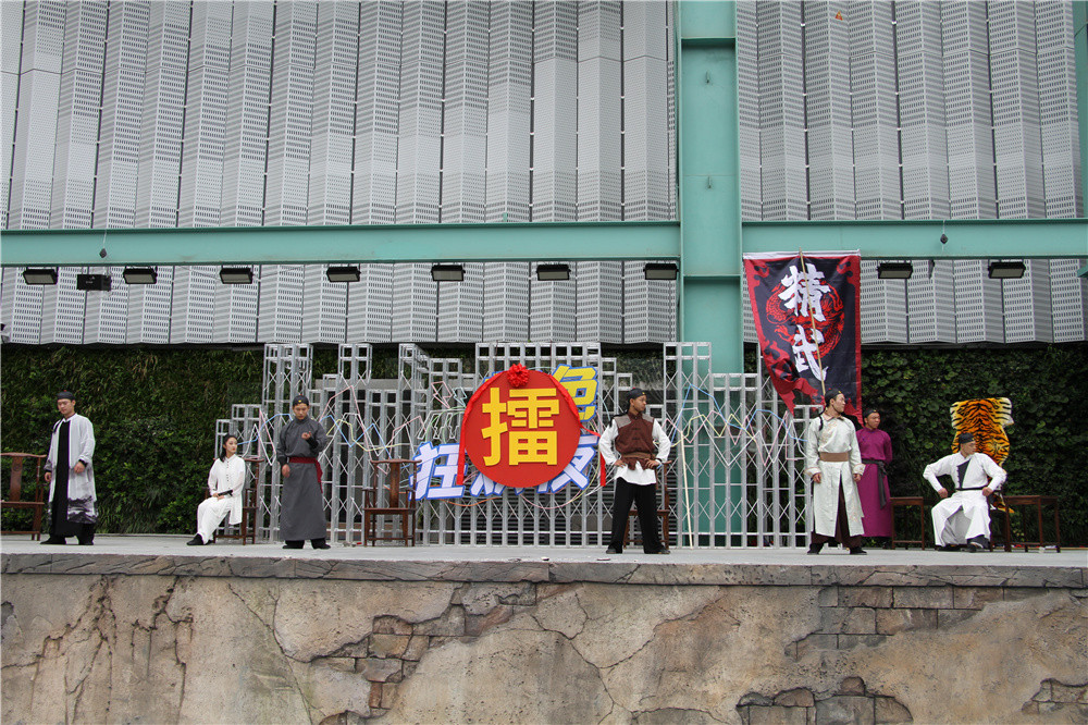 除了各种很适合拍照的场景,还有各种节目表演可以看,比如《精武擂台》的比武大会,真想上去挑战一番。