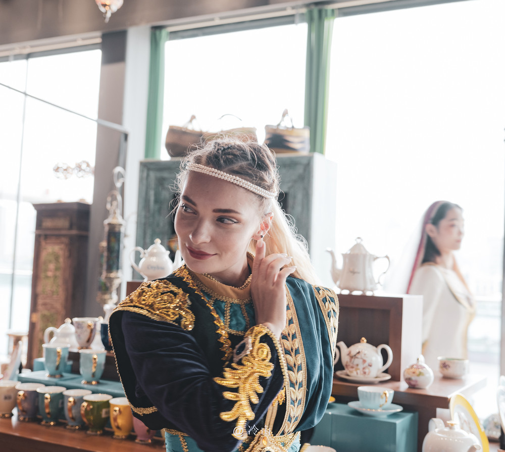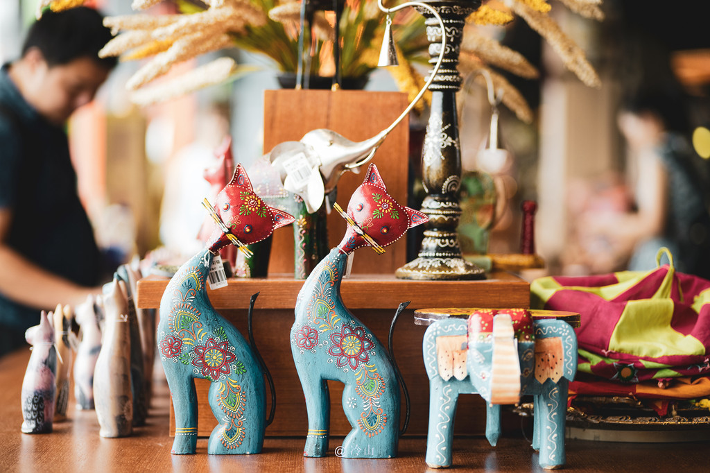 街市上有充满异域风情的手工艺品,波斯风情的毛毯,阿拉伯风的盘子,新疆的乐器,仿佛来到了古时的西域,奢华中的带着典雅气息。