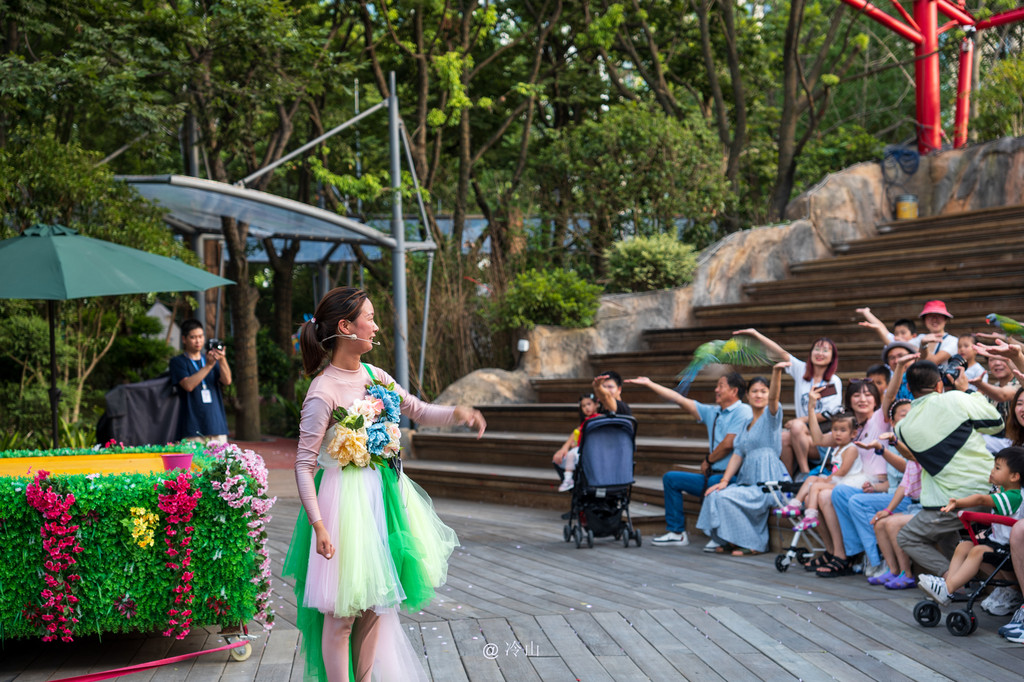 宋城不仅室内的几大表演体验区域,室外的音乐广场,彩色森林一样精彩。在树林中,小小的帐篷,彩色的动物出没其间,是一片奇幻的区域,在这里可以邂逅恐龙,可爱的羊驼,还有色彩斑斓的鹦鹉。