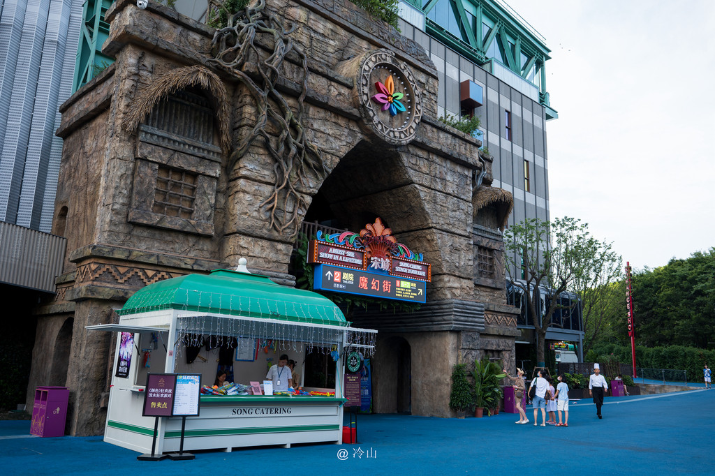 在这里感觉不到盛夏的酷暑,累了,可以买一杯饮料,在色彩缤纷的椅子上坐下,身后就是繁华的魔都,是很适合拍照的场景。不得不说,暑期的宋城游人真的很多,不过却没有人挤人的那种不适体验。