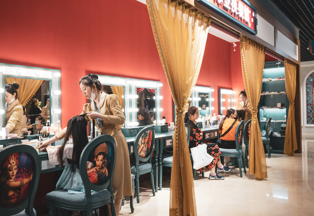 从西域风情中走出,来到了四楼,风从海上来。摩登岁月、申沪溯源,摩登换装馆,老上海的繁华在这里展现,我们可以在这里换装,回到摩登岁月。