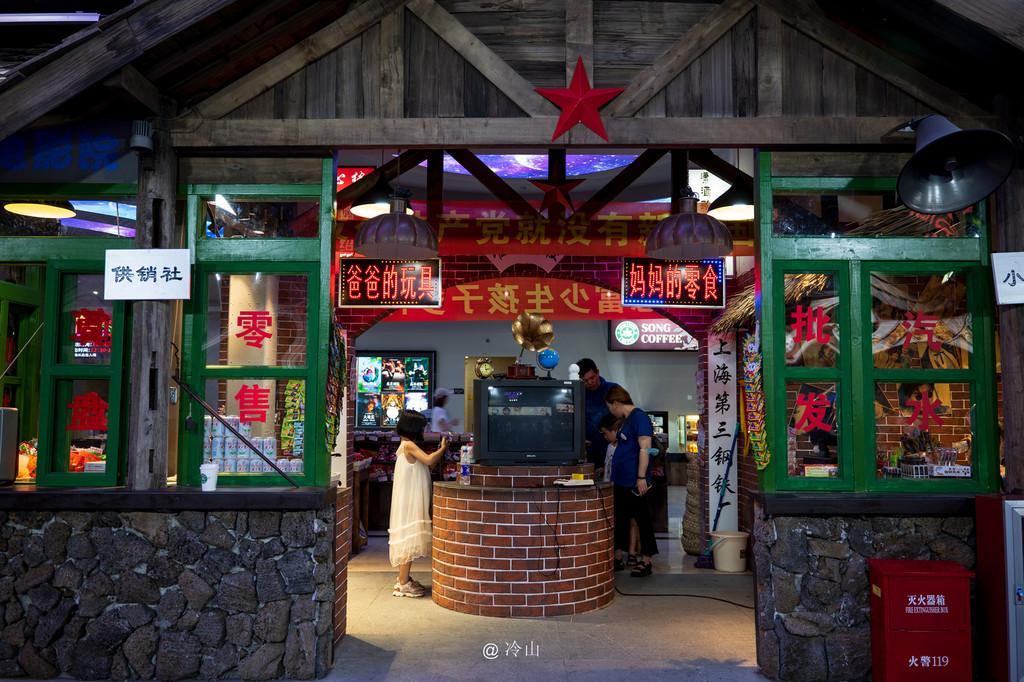 小吃广场上各种美味小吃,冰淇淋、豆腐花、热狗,价格也还可以,不过小朋友是没有太多的时间去品尝这些了,因为她被“儿时记忆”迷住了。复古的店铺、充满年代感的装饰,这里有爸爸妈妈的童年记忆。爸爸的玩具,妈妈的零食,爷爷的自行车,时光倒流到上个世纪。