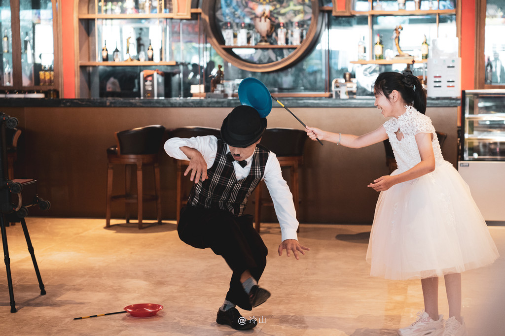 《你好,卓别林》,卓别林,你好。喜剧大师卓别林也来到了宋城,不用一句台词,凭着生动的肢体的语言就给孩子们带来无限的欢乐。不过,我家的小朋友就有点不开心了,每次都来的有点晚,屡屡失去与演员互动的机会,只能说说暑期宋城的人气太足了。