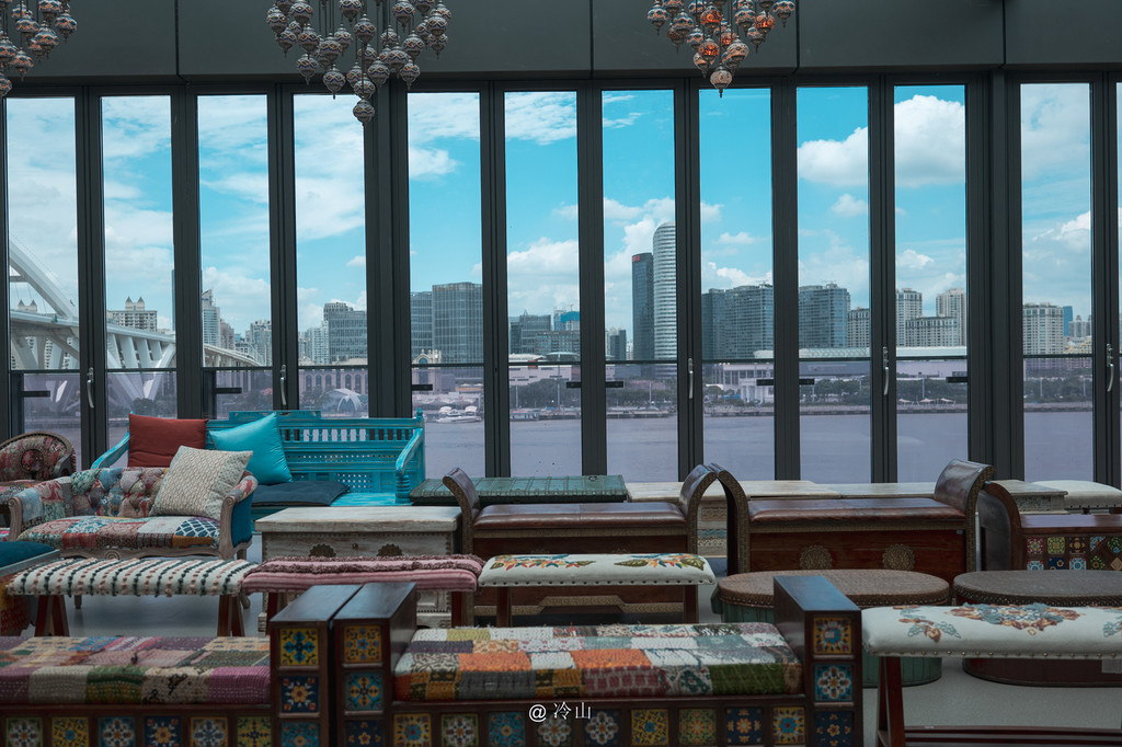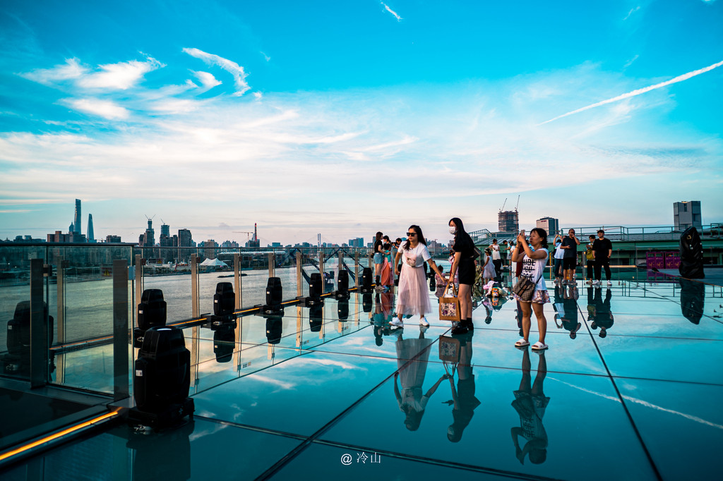 七楼的玻璃观景台并不算高,却有着非常好的视野,黄浦江就在旁边,不远处就是繁华的陆家嘴摩天大楼,不在外滩,我在宋城看风景。