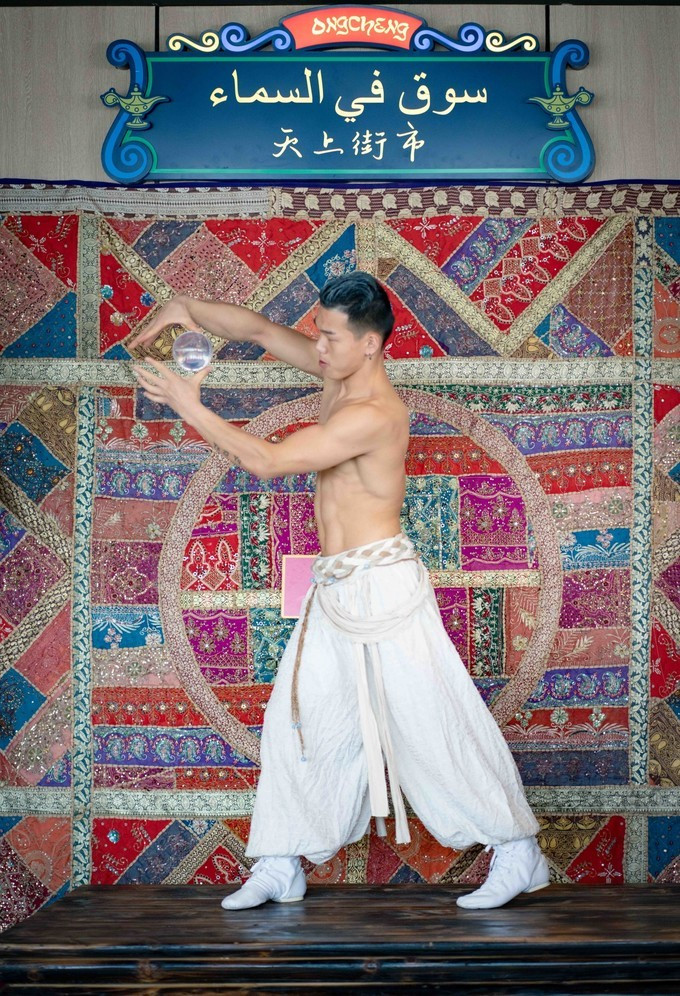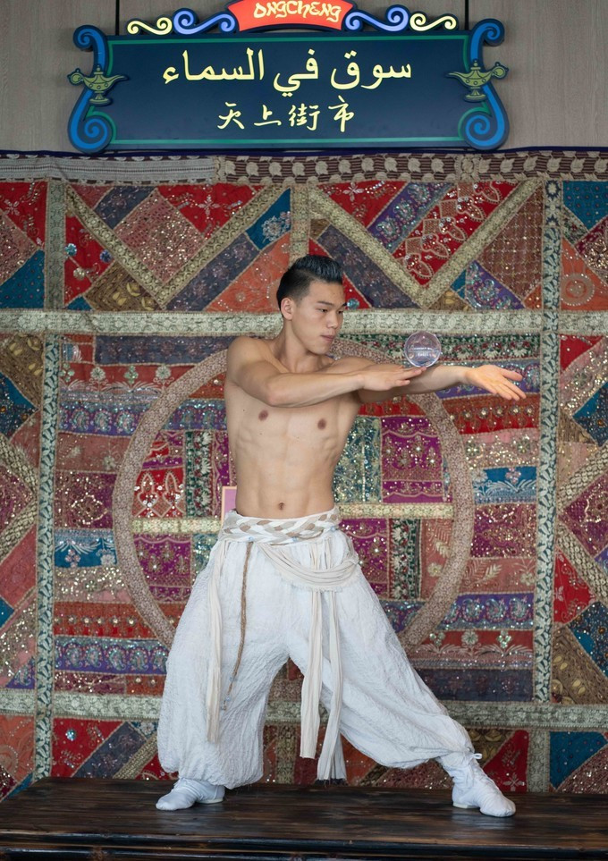 在6楼的天上街市,有一个表演,是你不得不看的,它就是《水晶球》!一个打扮得像阿拉丁神话里的演员,用水晶球,演绎了一场奇幻表演。只见水晶球在他的手臂里,变得不像一个球,而是一 汪清泉,一片海洋,一种生机盈然。让观众们的眼睛,紧随着那位演员的动作,此起彼伏川流不息,好生精彩绝伦,真是不可错过的游戏。