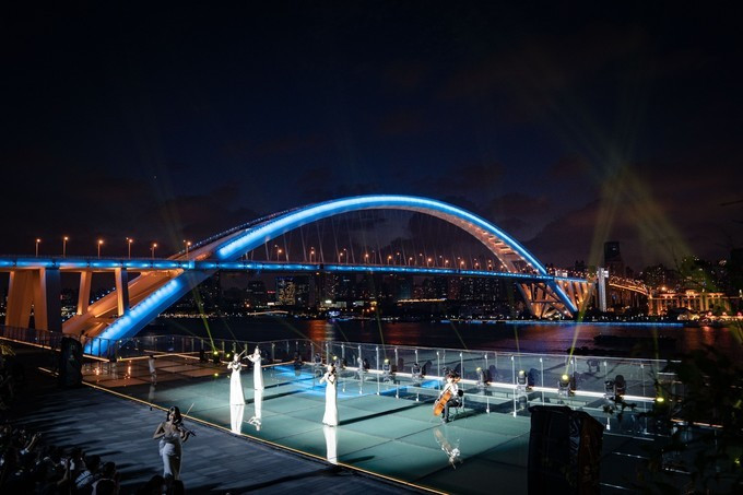这是一场高雅的音乐会,这是一场美丽共存的音乐会,那些演奏小提琴的女子,就像黑夜中的精灵一般,照亮了黑夜,撕破了时空,那清亮的琴声在黑夜里冉冉升起,这是一道 明光 啊,将人们心底的阴霾尽数吹散,带给人们至高的音乐享受,让灵魂共鸣的时刻到了,让人们享受的时刻到了。
