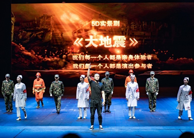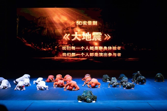 《大地震》,讲述的是 汶川 大地震的故事,《大地震》也是不得不看的演出之一,全方位立体地再现了2008年 汶川 大地震的惨况以及灾后的救援过程。,一上来并不是演出正式开始,而是现场导演走到舞 台中 间从现场观众中征集群众演员,让观众能够真正地参与其中,融入整个剧中,成为剧中的一份子,让所有的体验变得更为真实,也大大增强了整场演出的互动性。