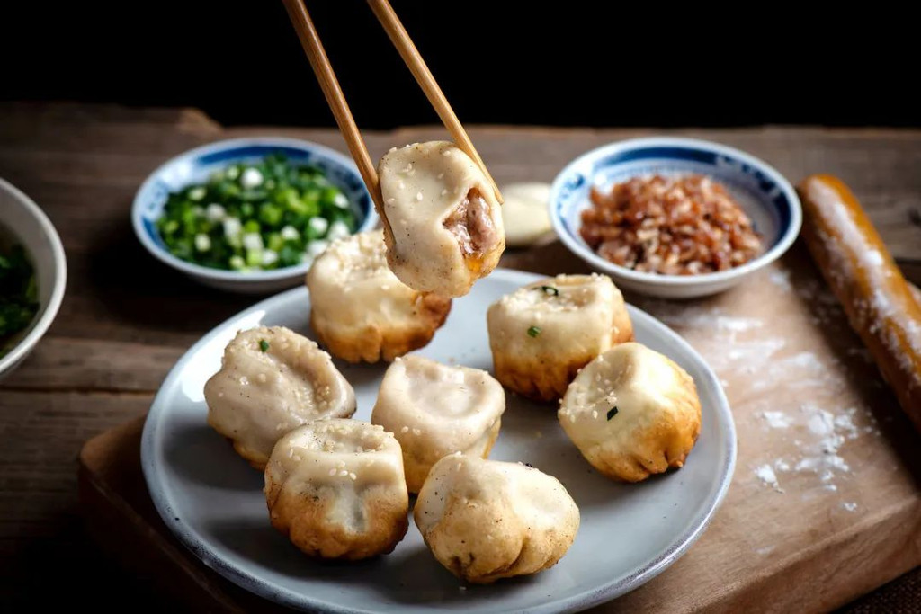 上海生煎包——底部总是煎得金黄焦香,肉馅中加上满满的肉汁,闻起来鲜香无比。
