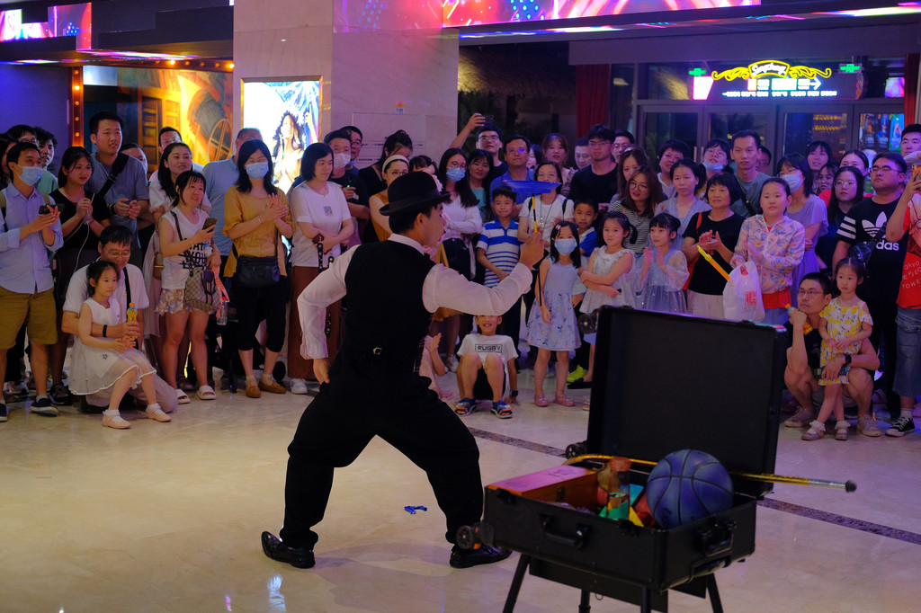 参加完颜色泼水派对,我们可以坐电梯到4F,到千古情街里面的摩登换装馆拍一些复古照,这里有许多民国时期的场景,很适合拍复古风的照片。拍完照片,我们就可以从千古情街出来,看一场搞笑的《你好!卓别林》演出,饰演卓别林的演员那滑稽的表演,逗得全场观众哄堂大笑。接着我们来到6F,可以去斜屋、倒屋、隐身屋拍照打卡,拍一些有趣的照片。然后我们可以看一场精彩的《水晶球》演出,可以看到水晶球在演员手上神奇地悬浮着。看完表演我们就可以去7F了,去鬼屋《聊斋惊魂》找一下刺激,感觉里面还蛮有那种氛围的,有一点小恐怖,还蛮好玩的。最后我们来到7F的玻璃观景台,脚踩着透明的玻璃(恐高者应该会害怕),看着黄浦江的美丽夜景,这种感觉还蛮不错的。