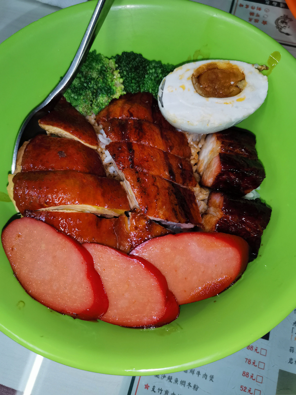 叉烧是肥瘦的,整体的口味偏甜,热乎的时候超级好吃。个人觉得口味够咸了,再配上咸鸭蛋真的有点齁。