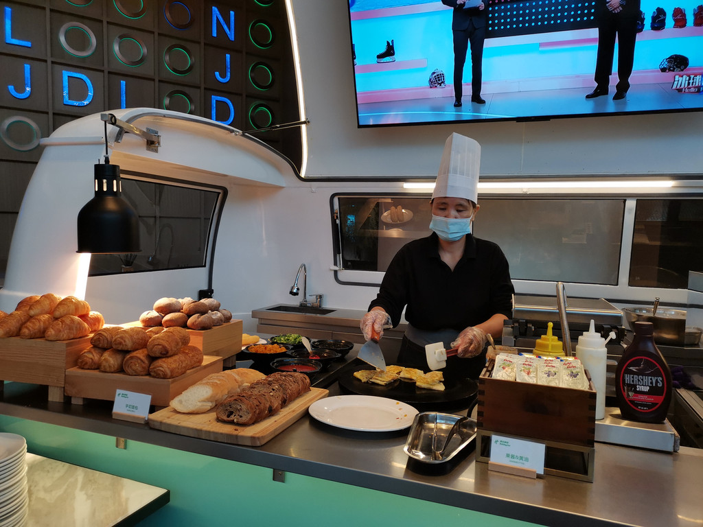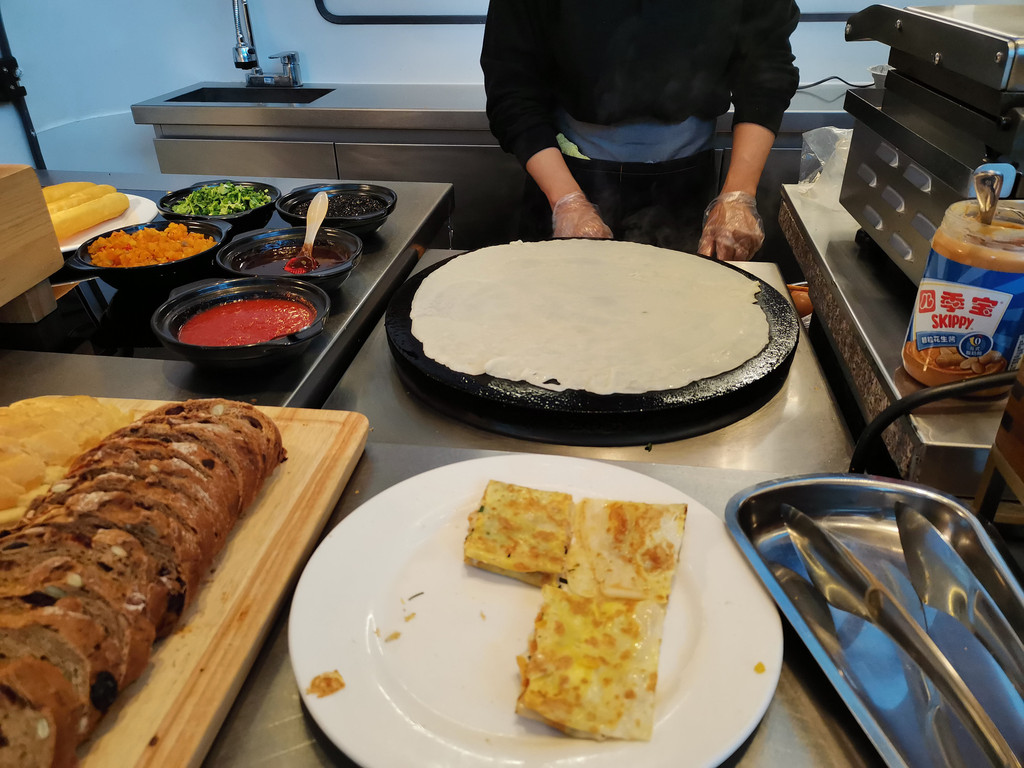 哦对,不得不说一下假日酒店的煎饼果子。作为一个天津人,看到这位阿姨做的煎饼果子当时心里真想说,各位一定要来天津吃个正宗的煎饼果子呀!真的不加菜,不加咸菜,面皮也不是白面的,果篦也不是薯片样子的呀。