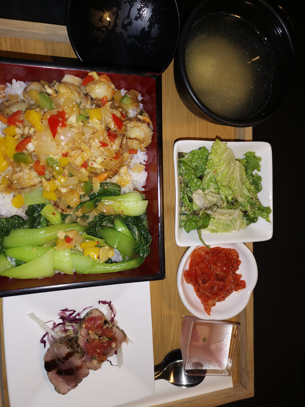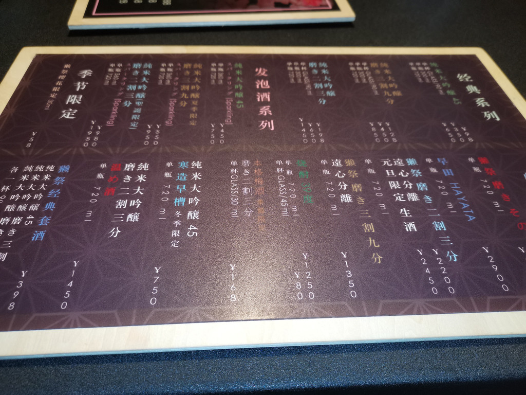 第二天的午饭我来到了全球只有三家的獭祭酒吧,我是中午去的,刚好是有午市定食,很多种,我选的是辣味增山北的。配上一杯季节限定的樱花清酒,也算是不负此行了。(毕竟我是打车半个多小时才到这的,就为看看这獭祭酒吧)