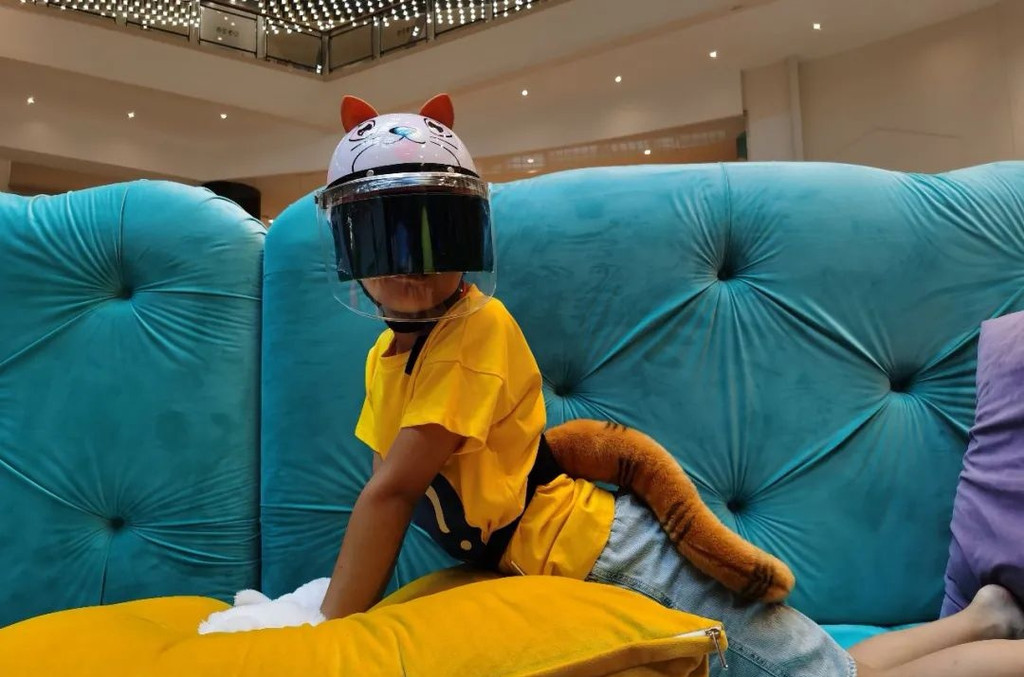 你以为只是穿戴好了摆摆POSE拍拍照吗?NO,NO,NO,“中科启元”和“萌动科学”的出品会这么简单吗?来,戴上猫咪头盔,头盔上有特殊设计,现在你的视角才是猫咪真正看到的样子。