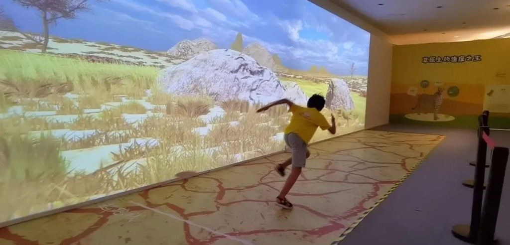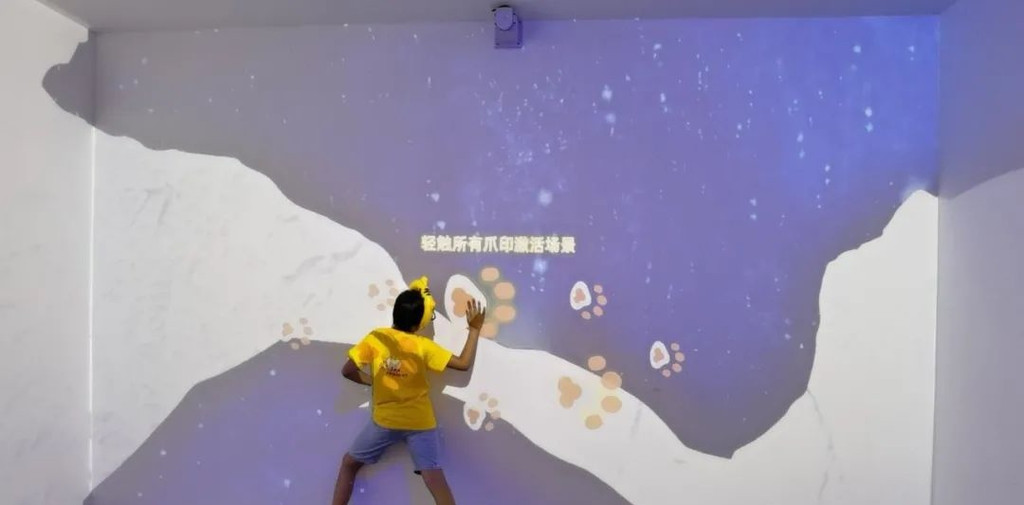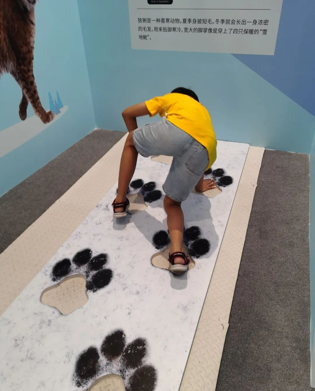 这个展区超好玩!用上你的“四爪”,对,一定要手脚并用或者几个人联合在互动屏上共同触摸爪印,冰河时代才会缓缓在我们面前打开。