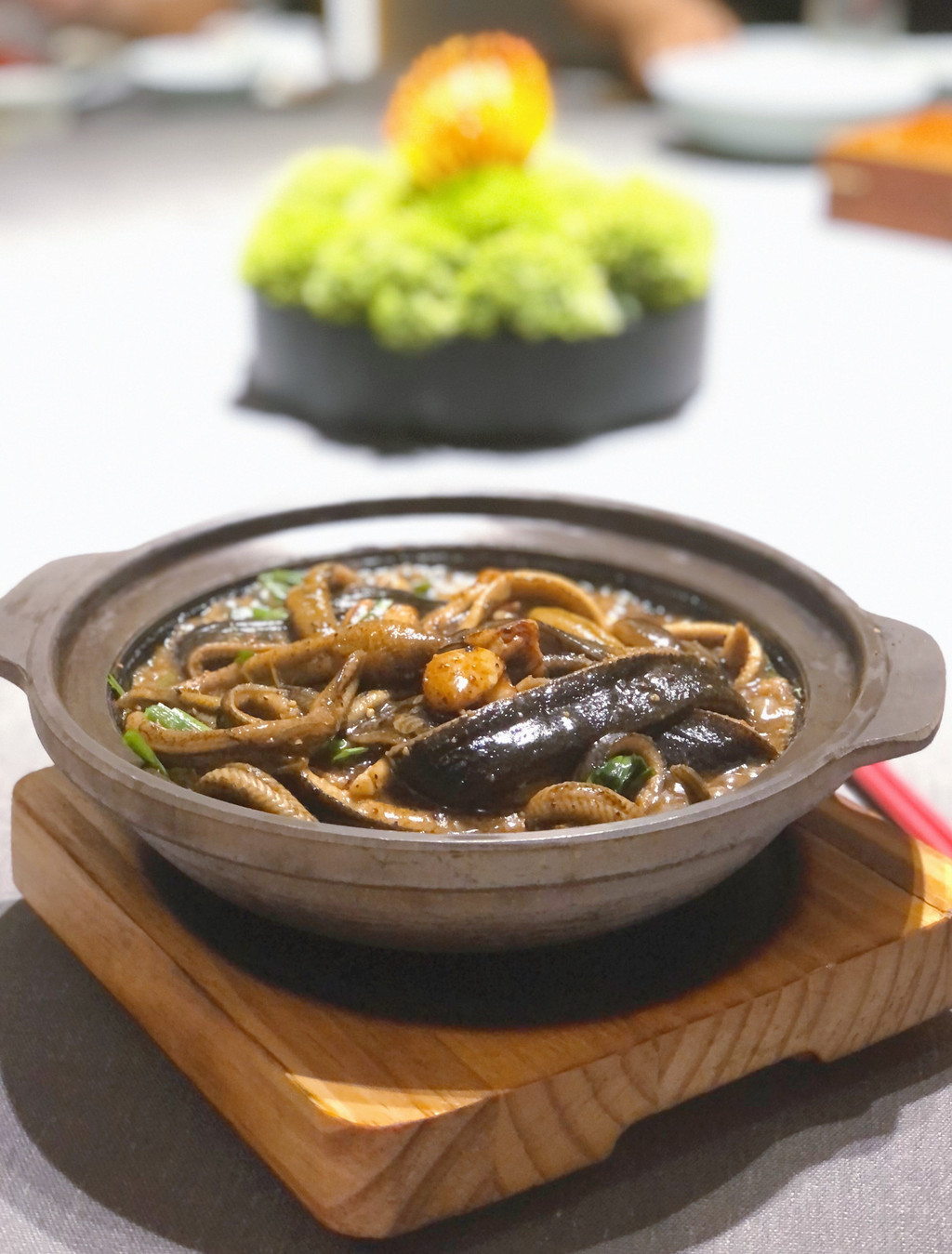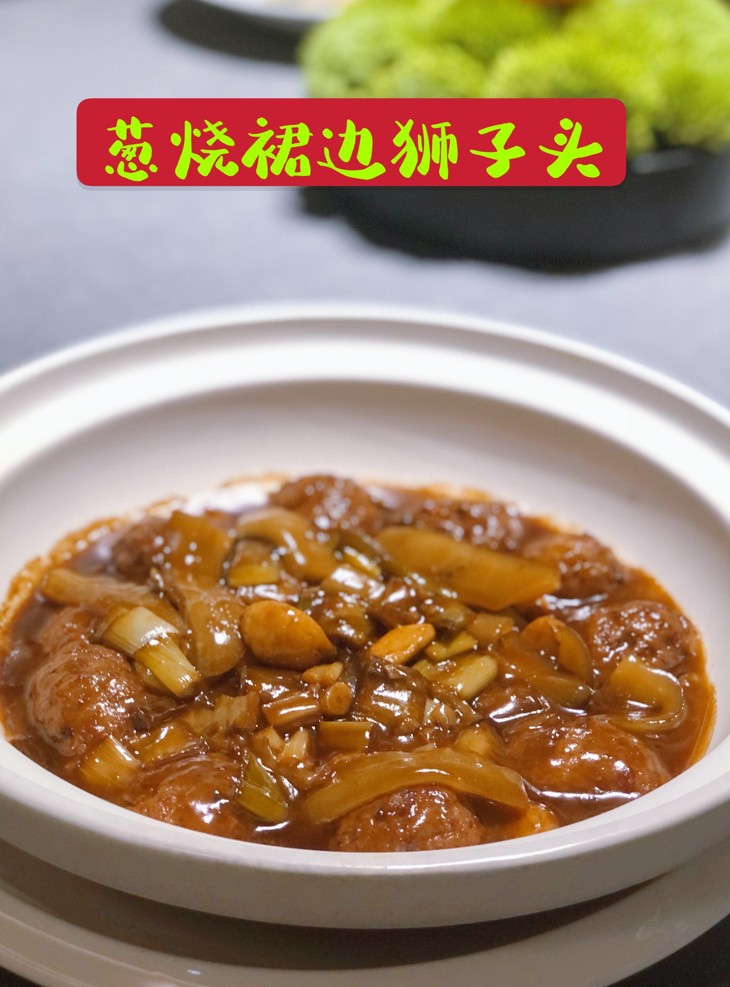 #葱烧裙边狮子头298元#光看狮子头组成的食材:虾仁、鲍鱼、裙边、鱼肚、鸡胗、马蹄、笋、金华火腿,这道菜有种揽尽天下鲜的感觉,松软之中富有弹性的肉质带点脆爽感,我心中唯一挚爱的“宝”。