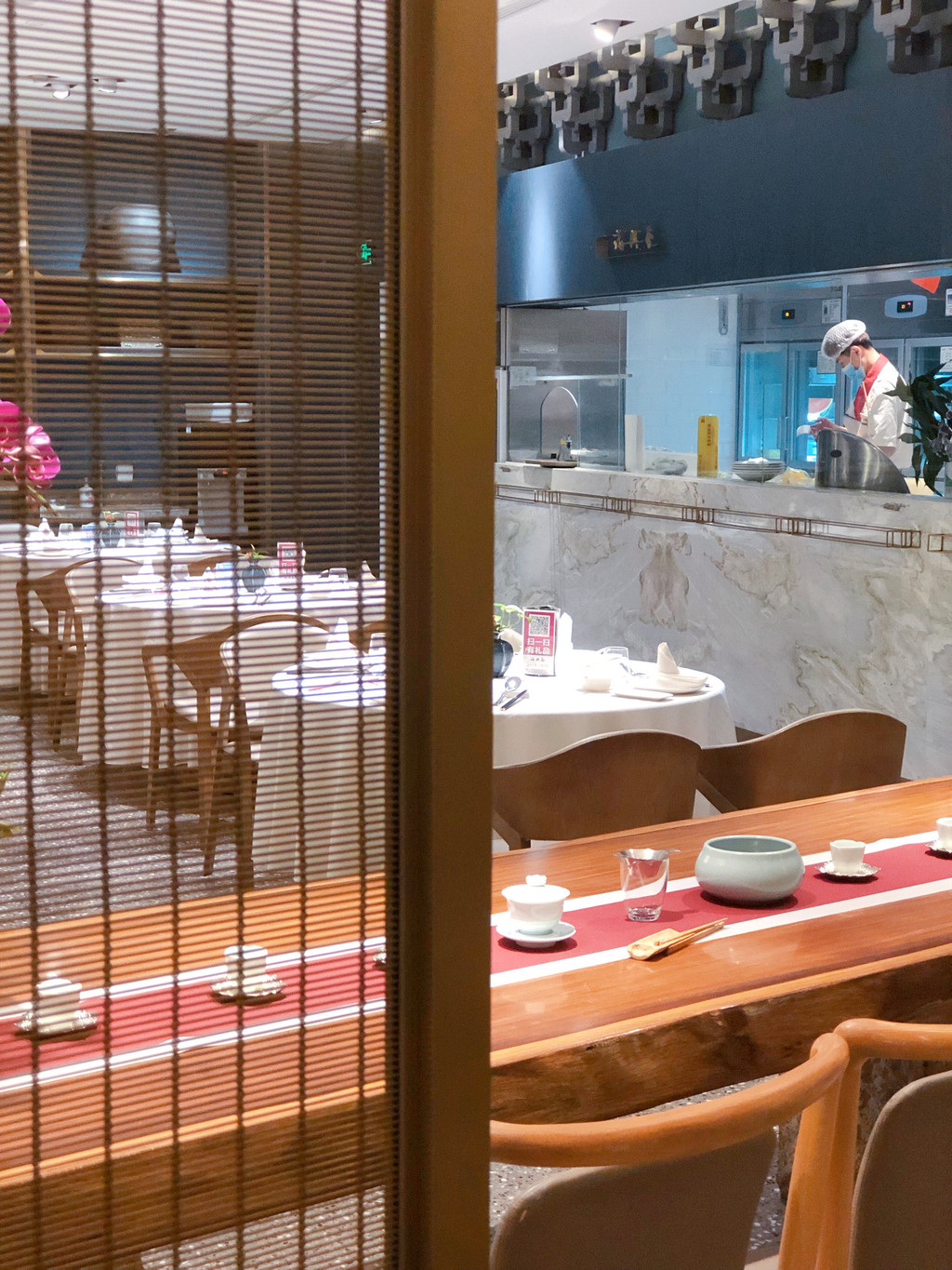 有80年的老店,餐厅门口右侧的电视屏幕上,能观赏到厨房工作状况,“明厨亮灶”实现“阳光操作”,让食客吃得安心放心。整个餐厅属于中式环境,雅致静谧,大堂圆桌间距离宽敞,位置舒适。朦胧的帷幕把大堂与走廊阻隔开来。