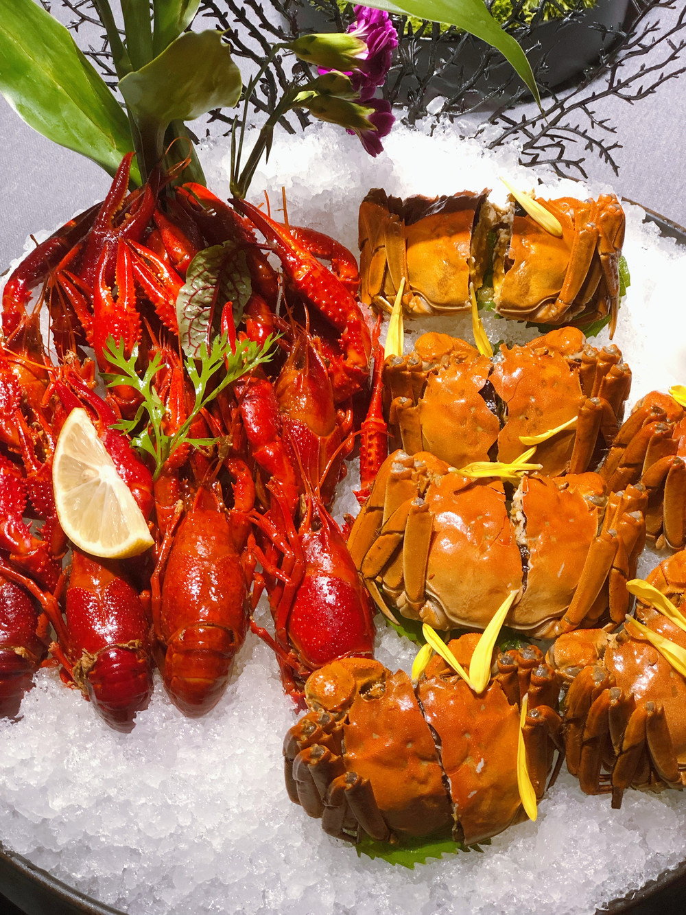 #十年花雕熟醉蟹6只408元、酒醉虾11个352元#用10年绍兴陈年花雕酒浸润,其温润的口感与馥郁香气赋予熟醉蟹沉醉之味,不仅提升鲜美,还能中和蟹的凉性。第一口,鲜甜,腥气去得很干净。第二口,微酸,带着陈皮香。多吃几口,花雕酒香回味十足。龙虾肉质融入了酒香,且透着丝丝甘甜鲜美。