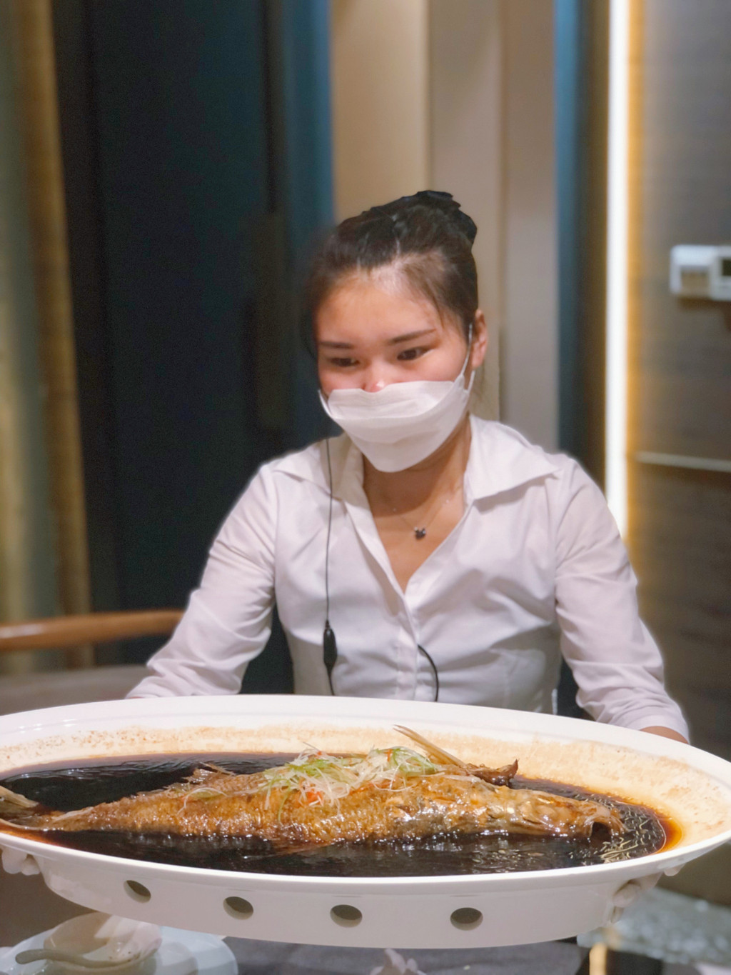 #红汤秘制香鱼498元#鱼肉完全沉溺在了汤中,将鲜的风味发挥得淋漓尽致。
