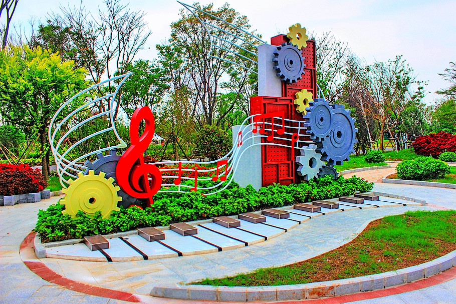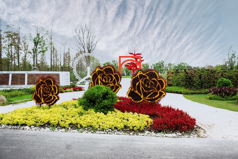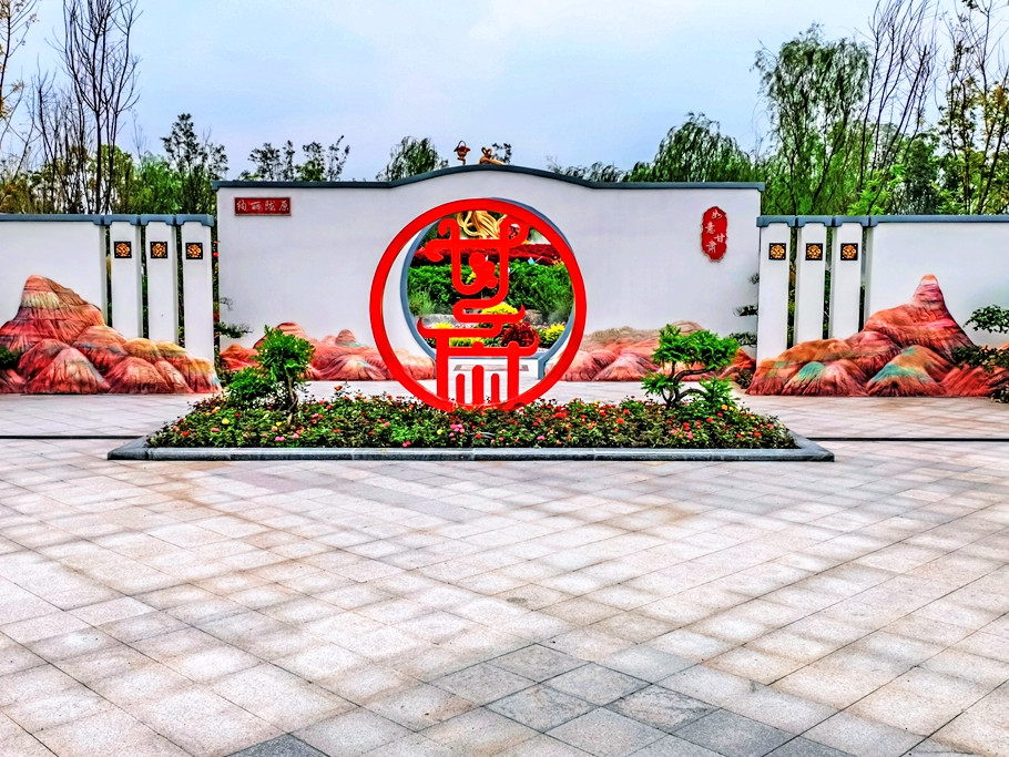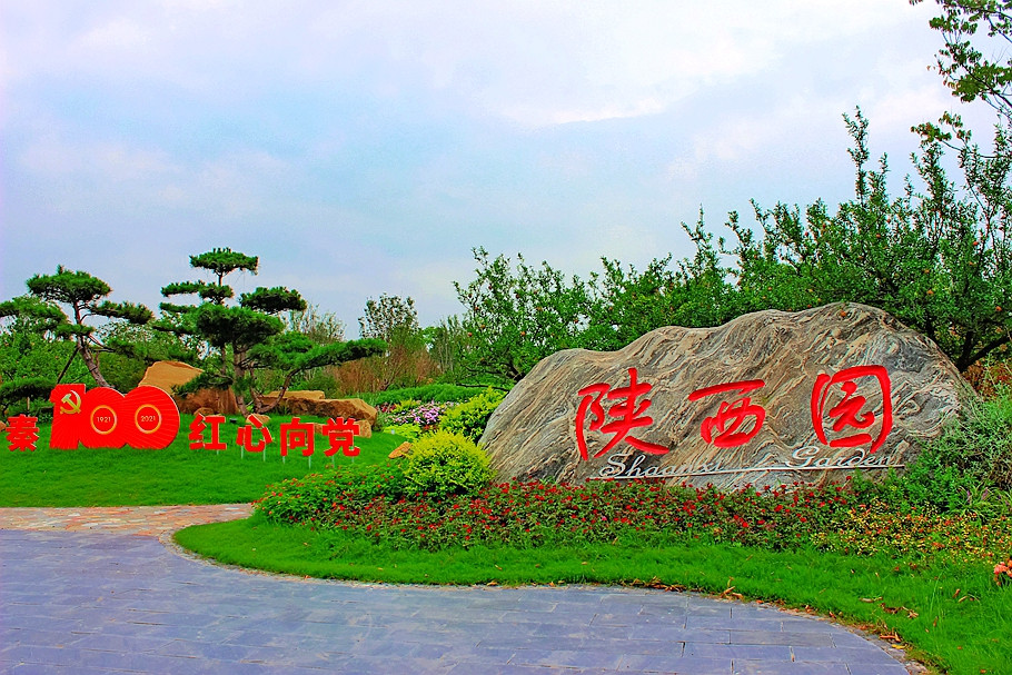 陕西园主题“传承红色,花漾三秦”,将延安的宝塔山,用“剪纸”艺术结合锈版来打造成为园区的景观亮点。